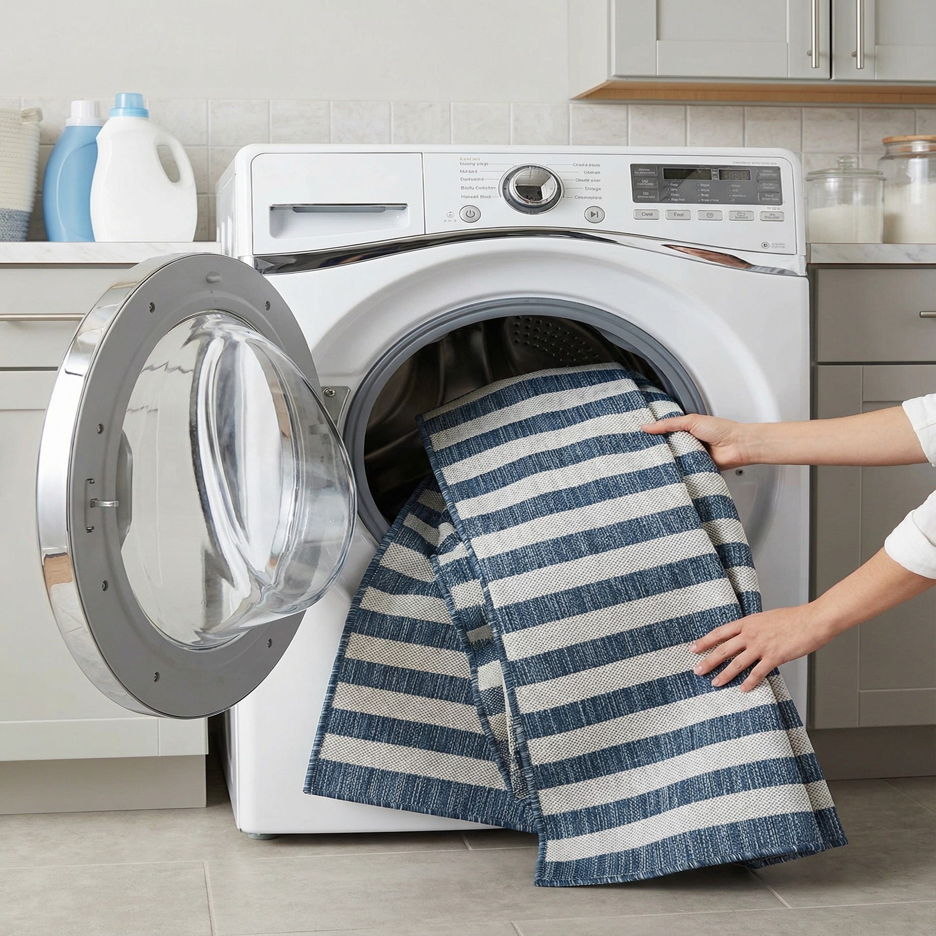 5' 3 x 7' Washable Striped Indoor / Outdoor Rug