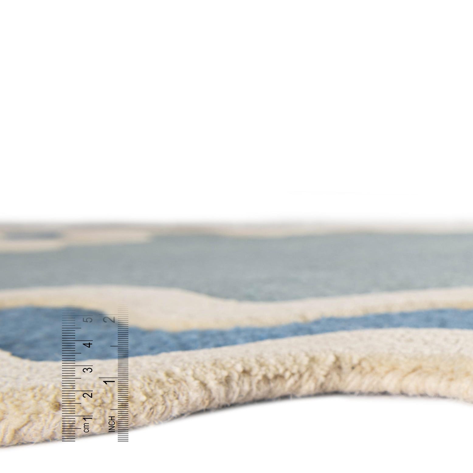 Primary color is Blue. Colors in this rug include: Blue, Ivory.