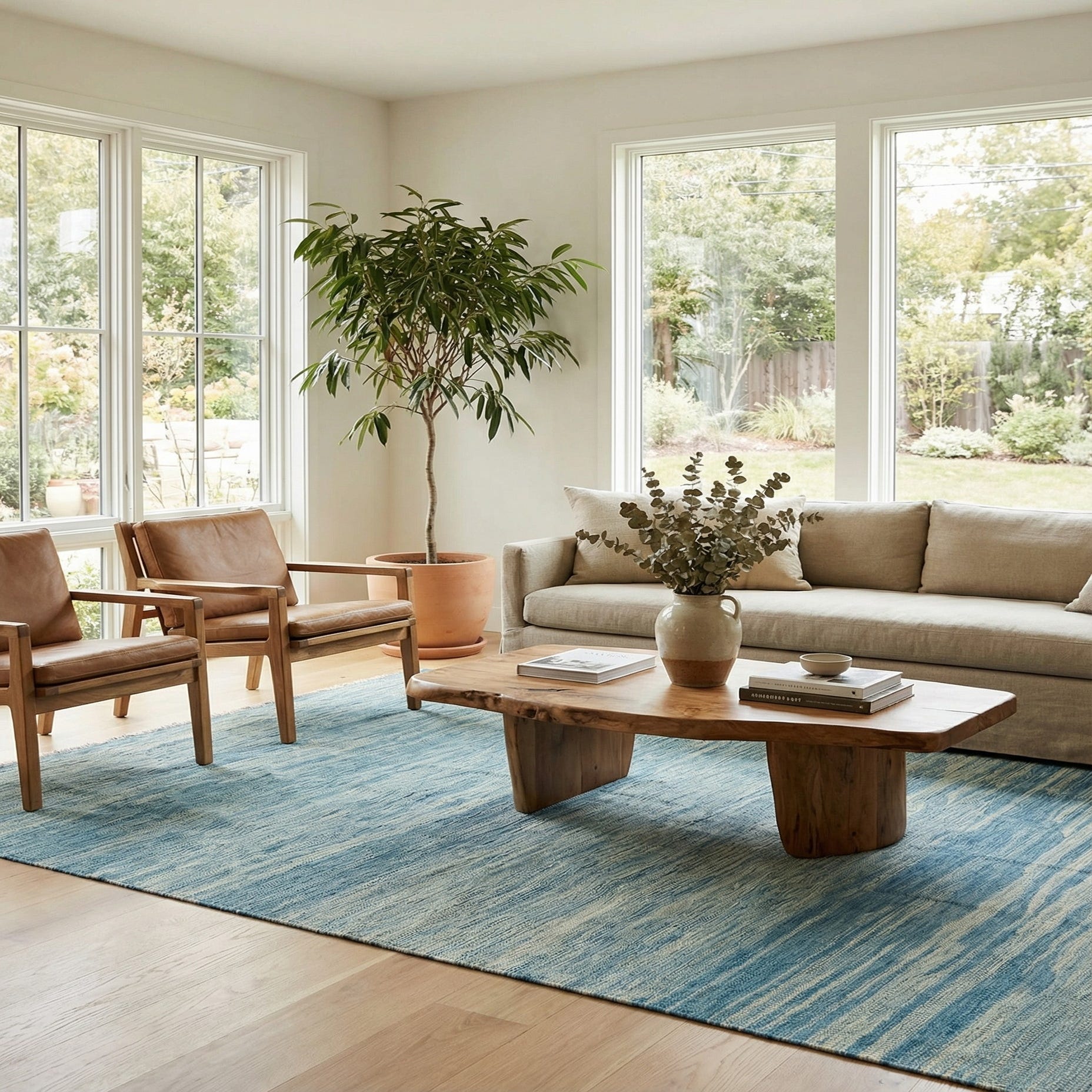 Primary color is Blue. Colors in this rug include: Blue, Beige.