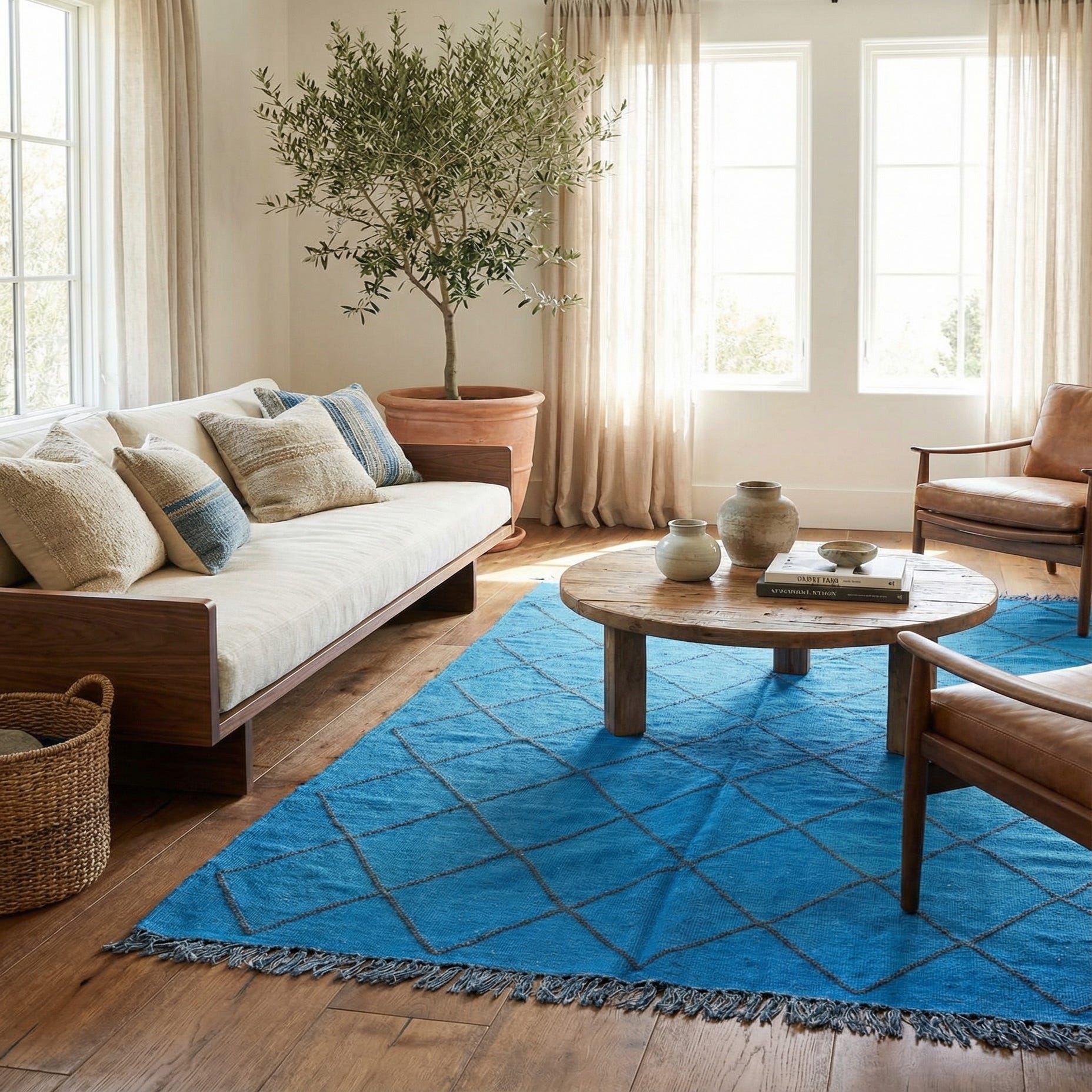 Primary color is Blue. Colors in this rug include: Blue, Black.