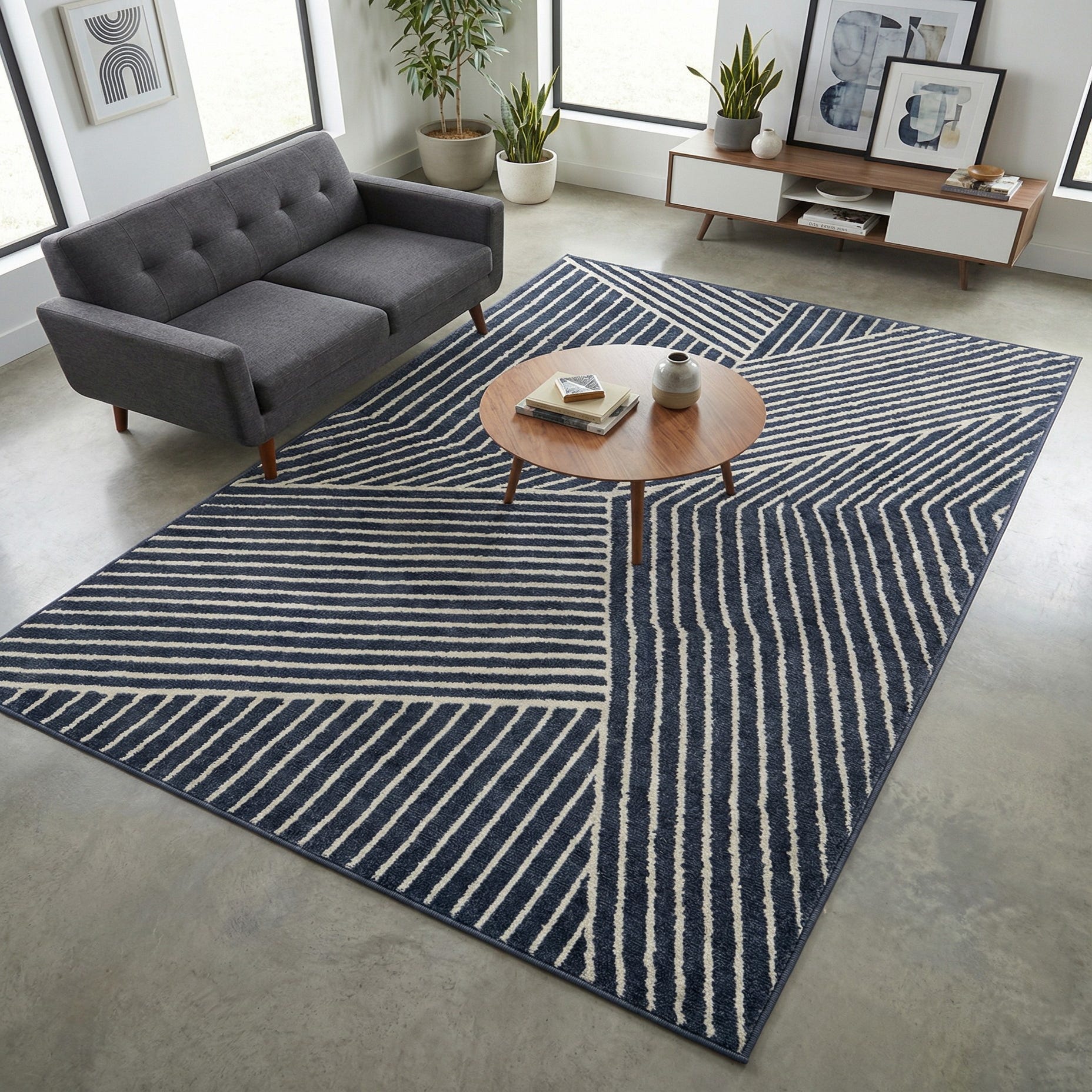 Primary color is Blue. Colors in this rug include: Blue, Ivory.