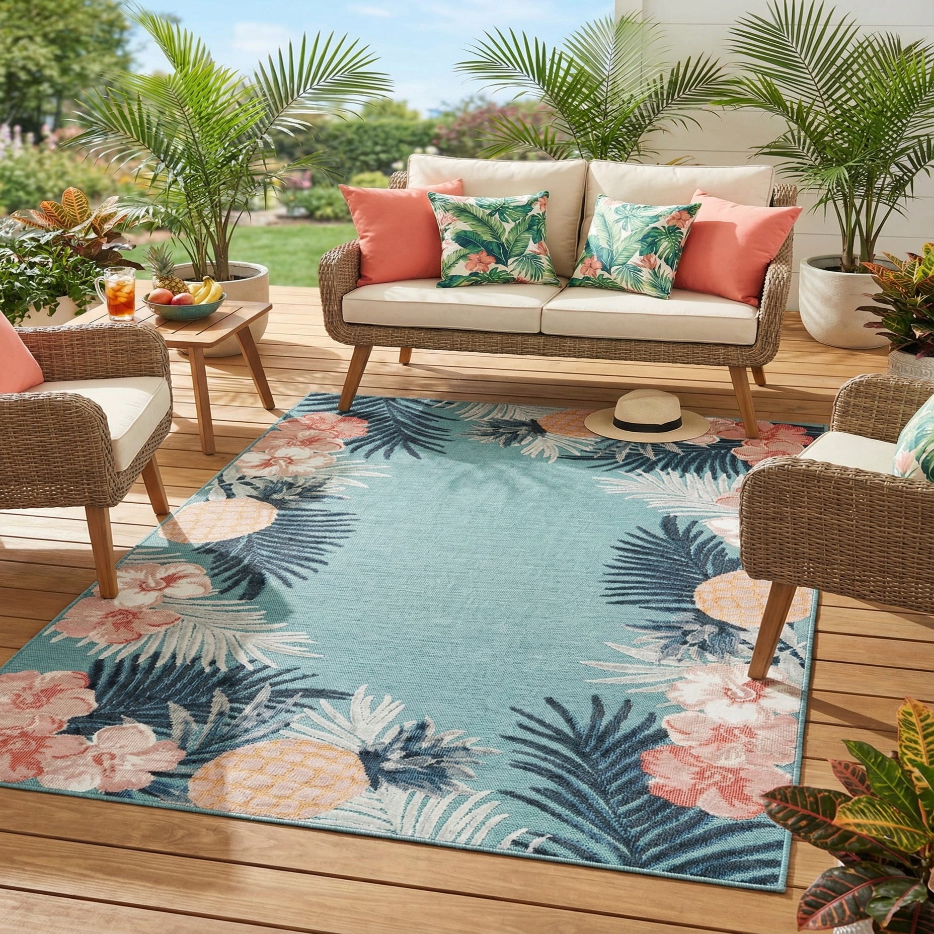 5' 2 x 8' Washable Botanical Indoor / Outdoor Rug