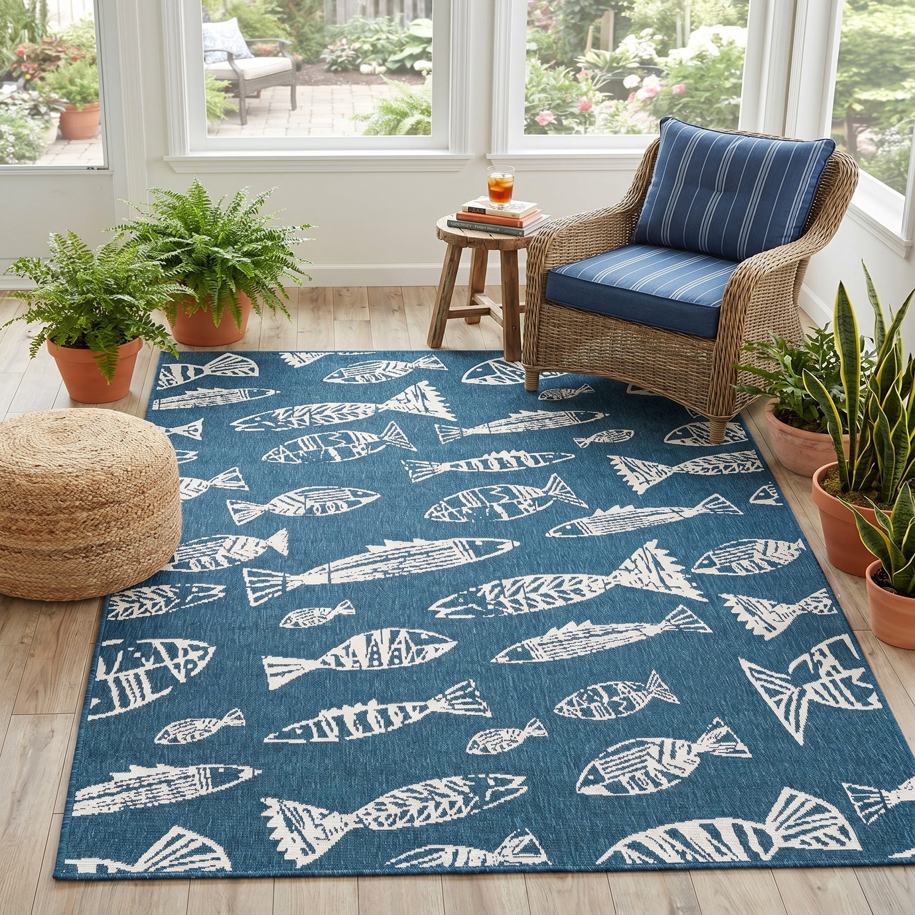 5' 3 x 8' Easy-Clean Coastal Indoor / Outdoor Rug