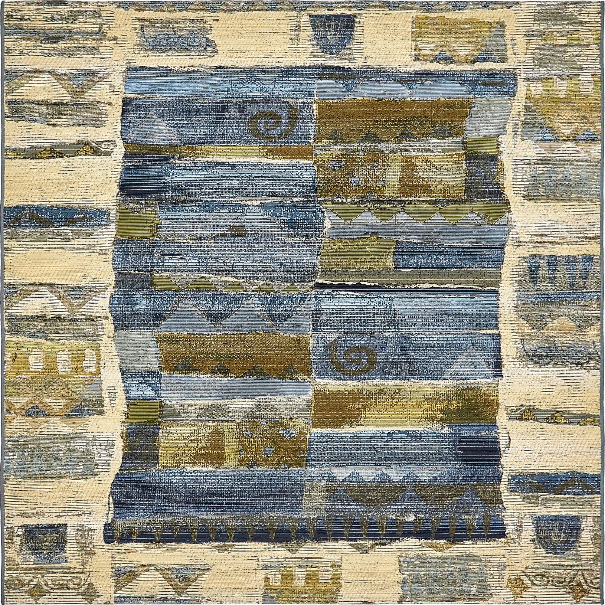 Primary color is Blue. Colors in this rug include: Blue, Beige, Brown, Cream, Olive.