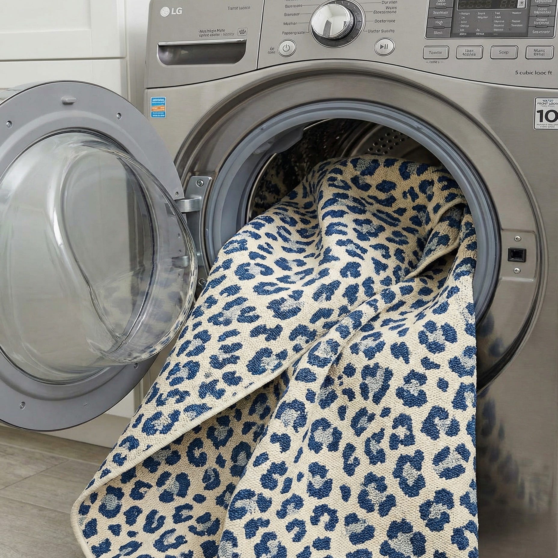 Primary color is Blue. Colors in this rug include: Blue, Ivory.
