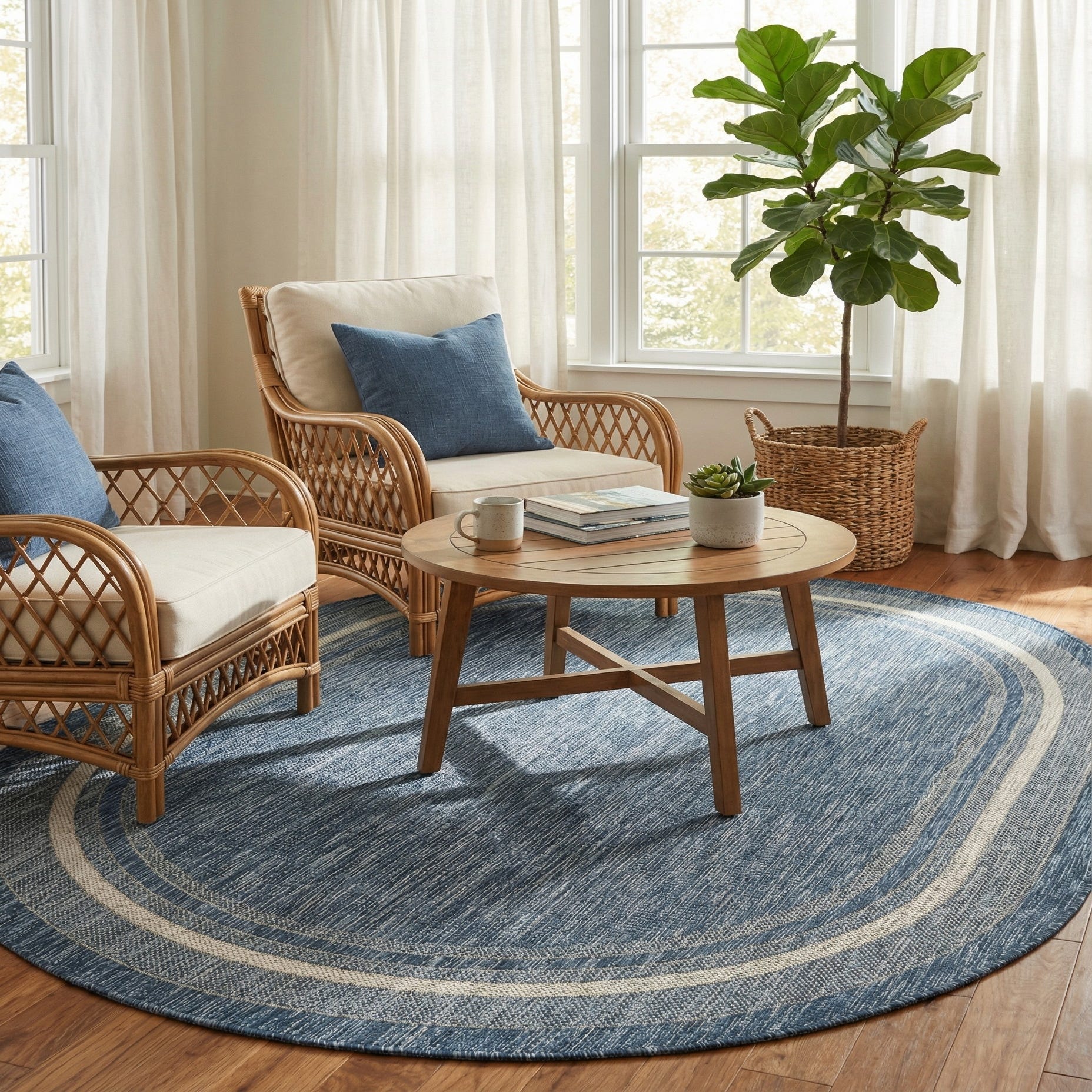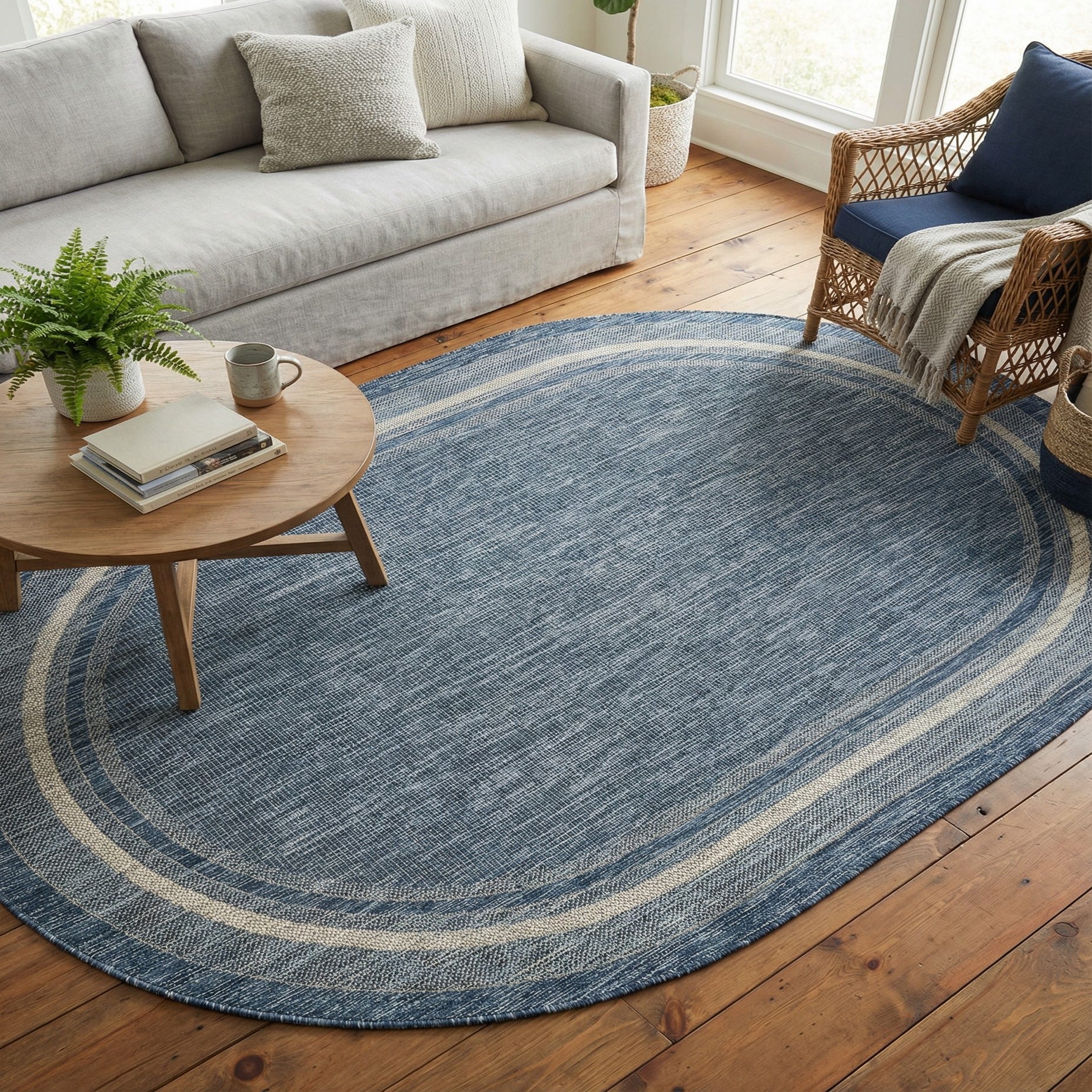 5' 3 x 8' Washable Border Indoor / Outdoor Oval Rug