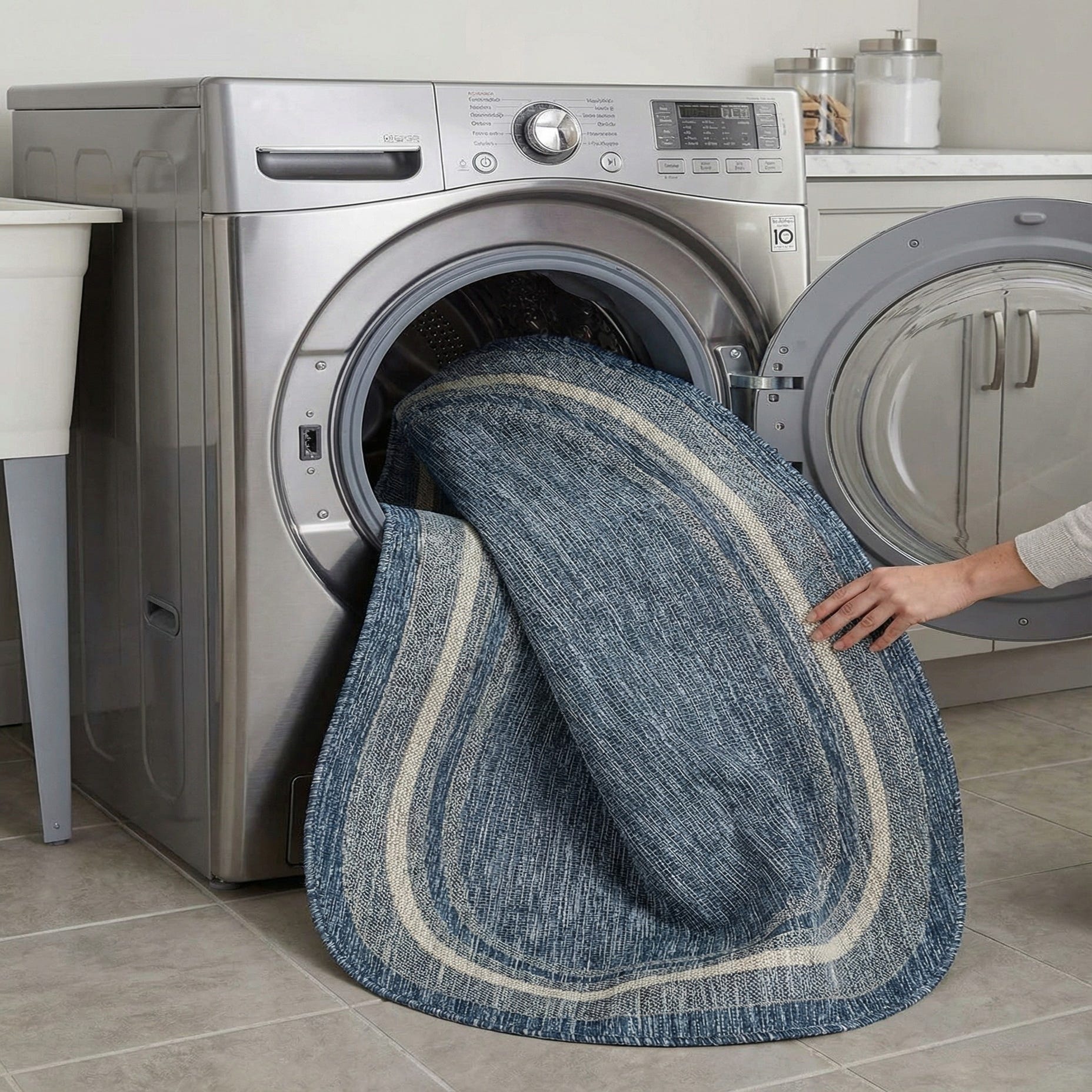 Detail image of 5' 3 x 8'  Washable Border Indoor / Outdoor Oval Rug