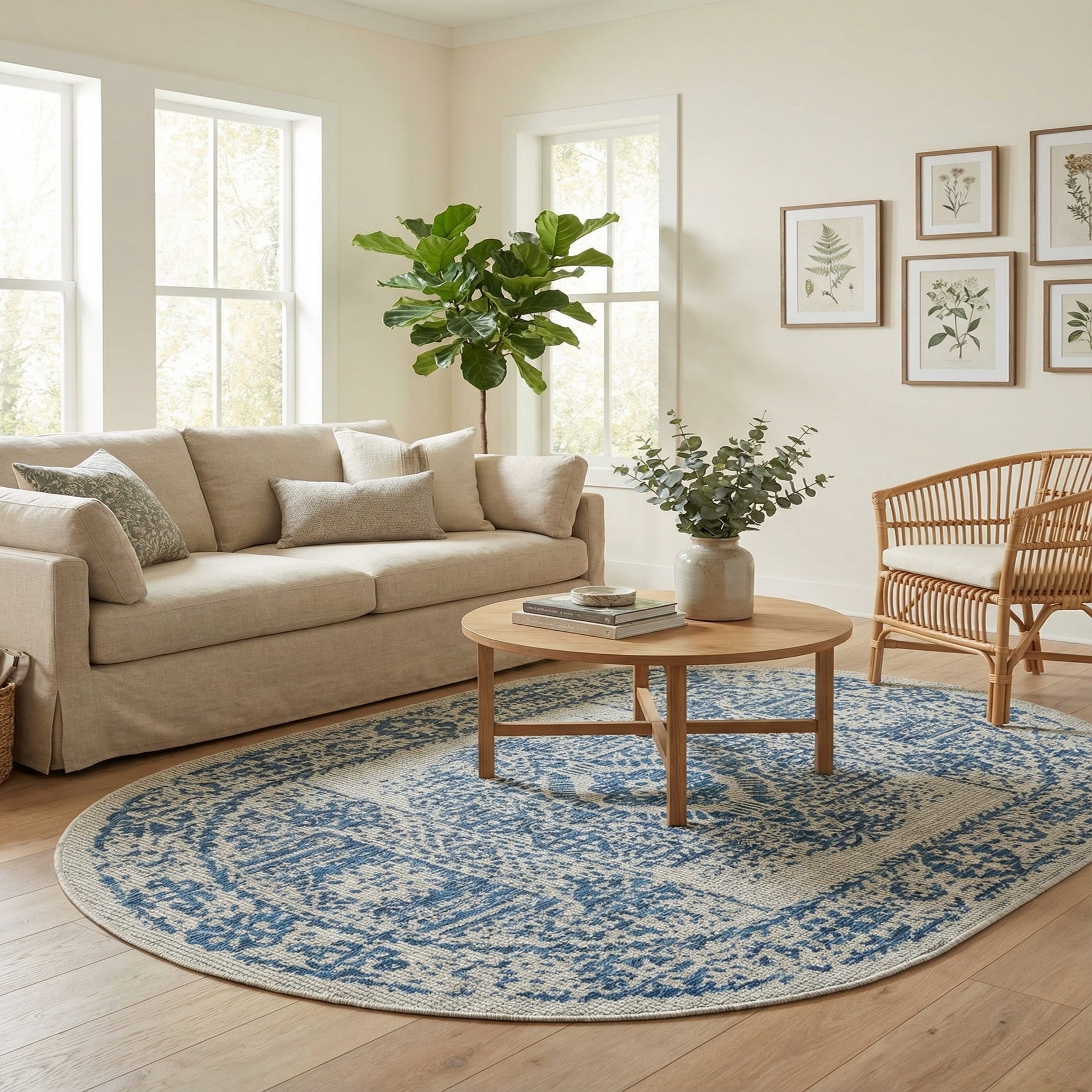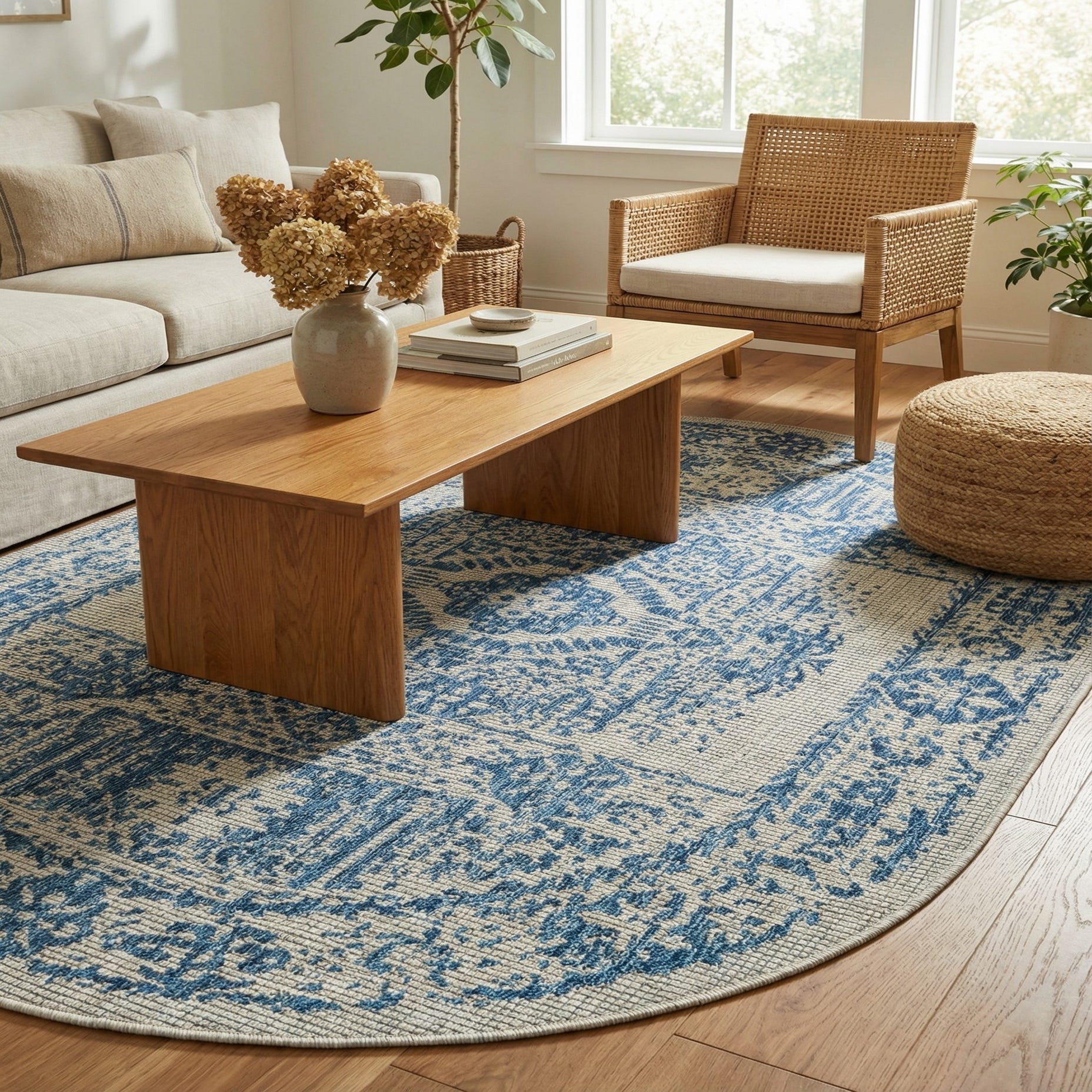 5' 3 x 8' Washable Traditional Indoor / Outdoor Oval Rug