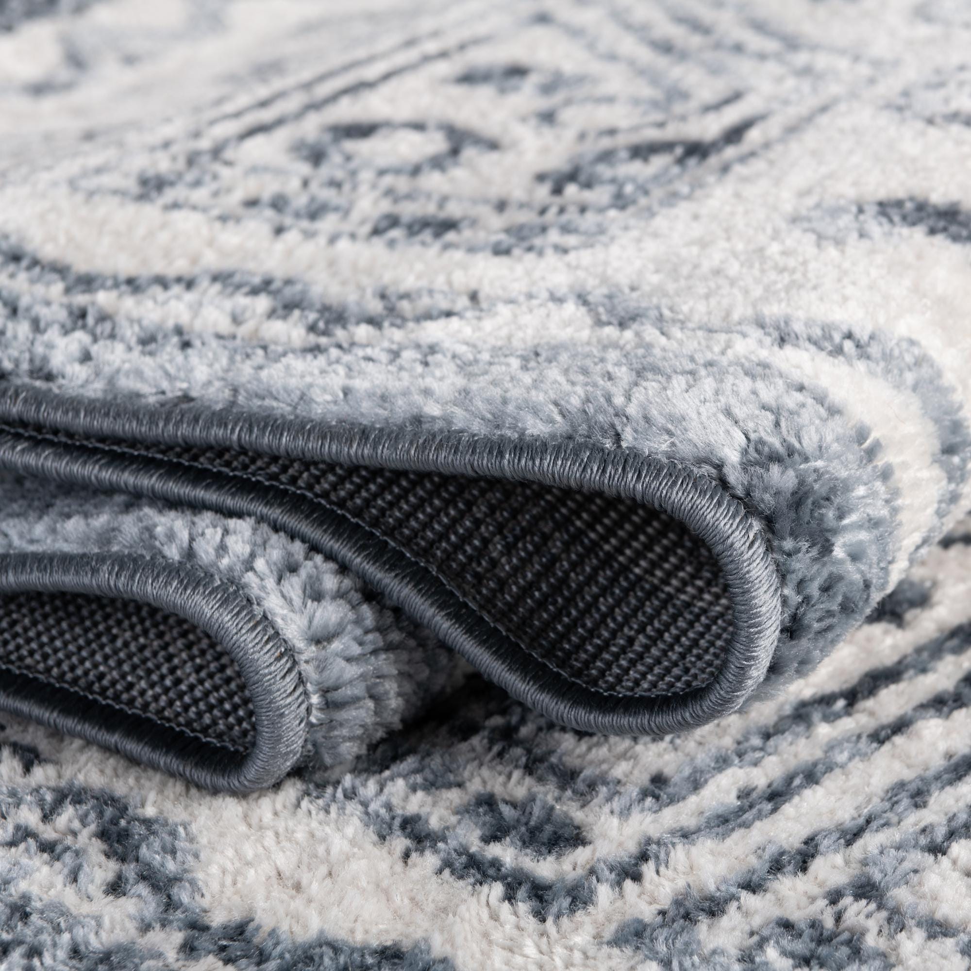 Primary color is Blue. Colors in this rug include: Blue, Ivory.