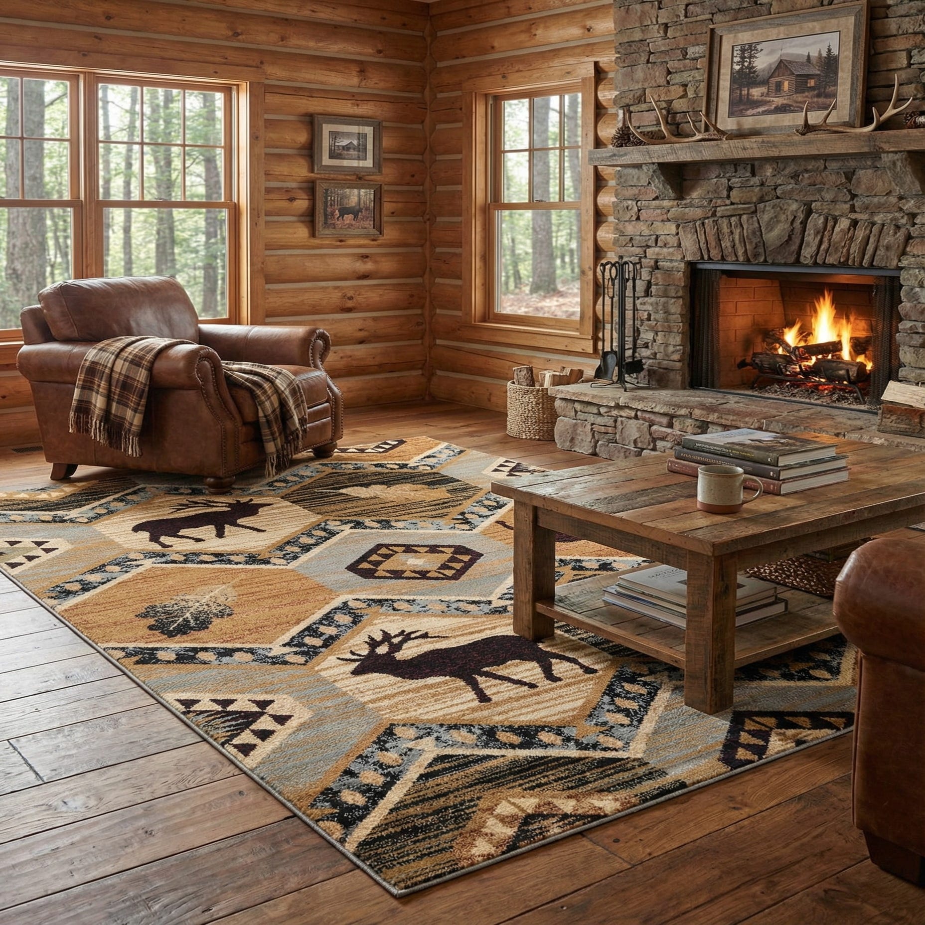 Primary color is Blue. Colors in this rug include: Blue, Beige, Black, Brown, Red, Gray.