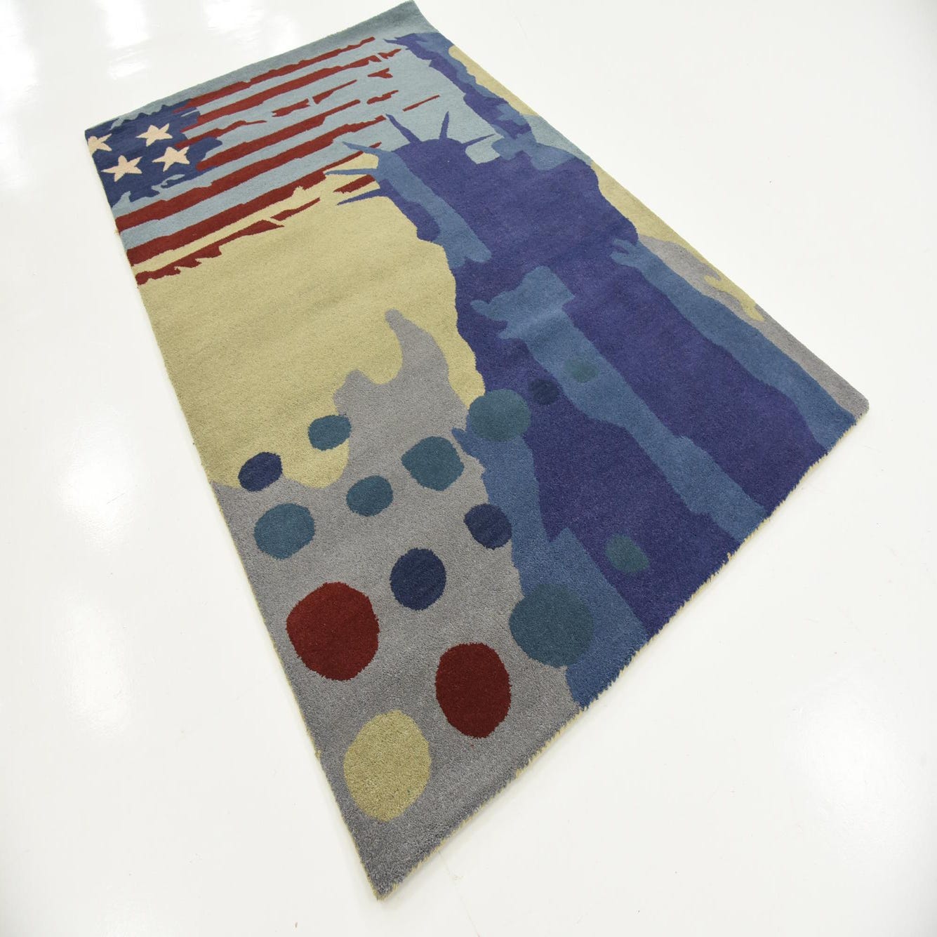 Primary color is Blue. Colors in this rug include: Blue, Light Blue, Red, Beige, Navy Blue.