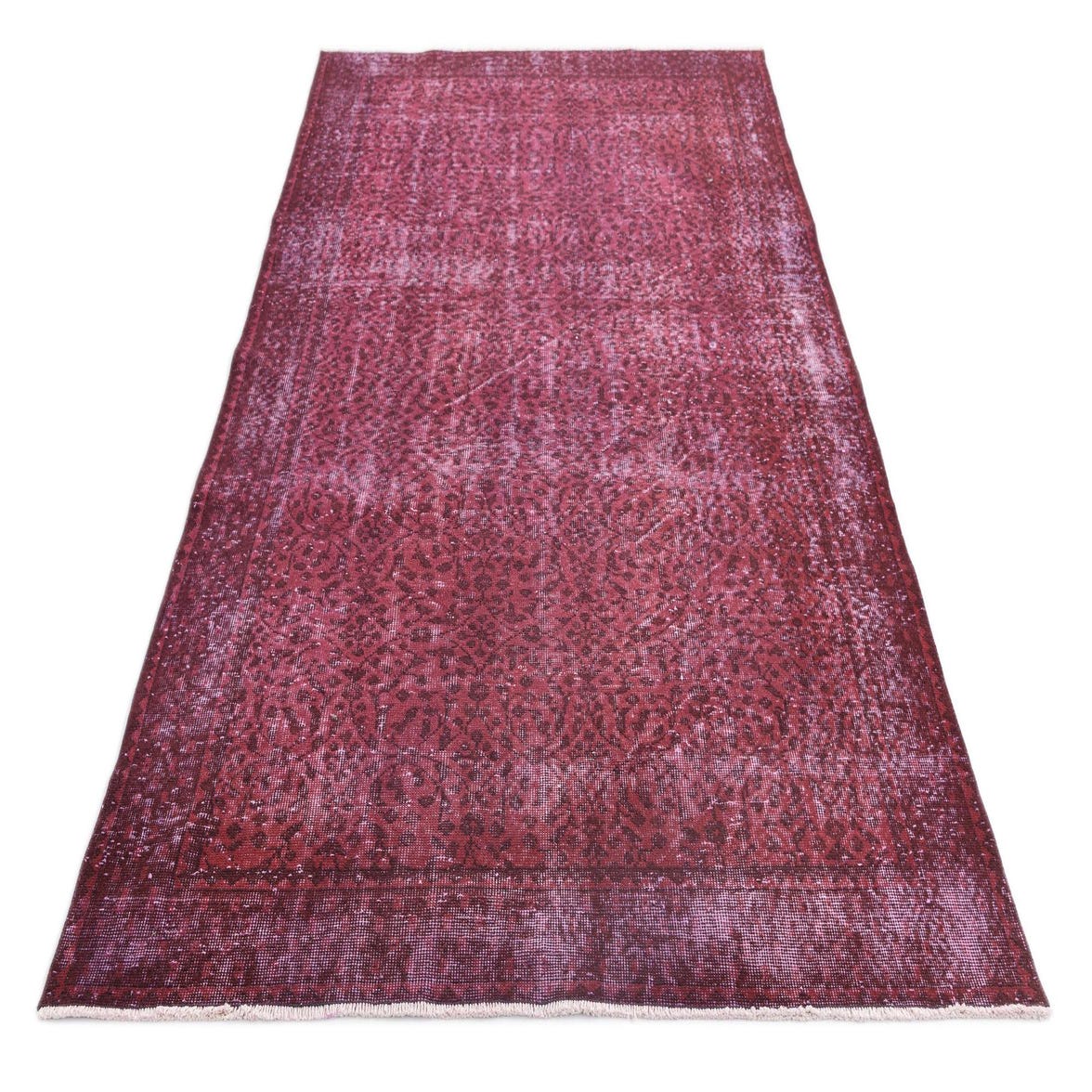 This Persian Ultra Vintage rug is an antique Persian Rug that has been washed, over-dyed, and then shaved down to a low pile. Look at the detail pictures to fully appreciate the uniqueness of this piece.