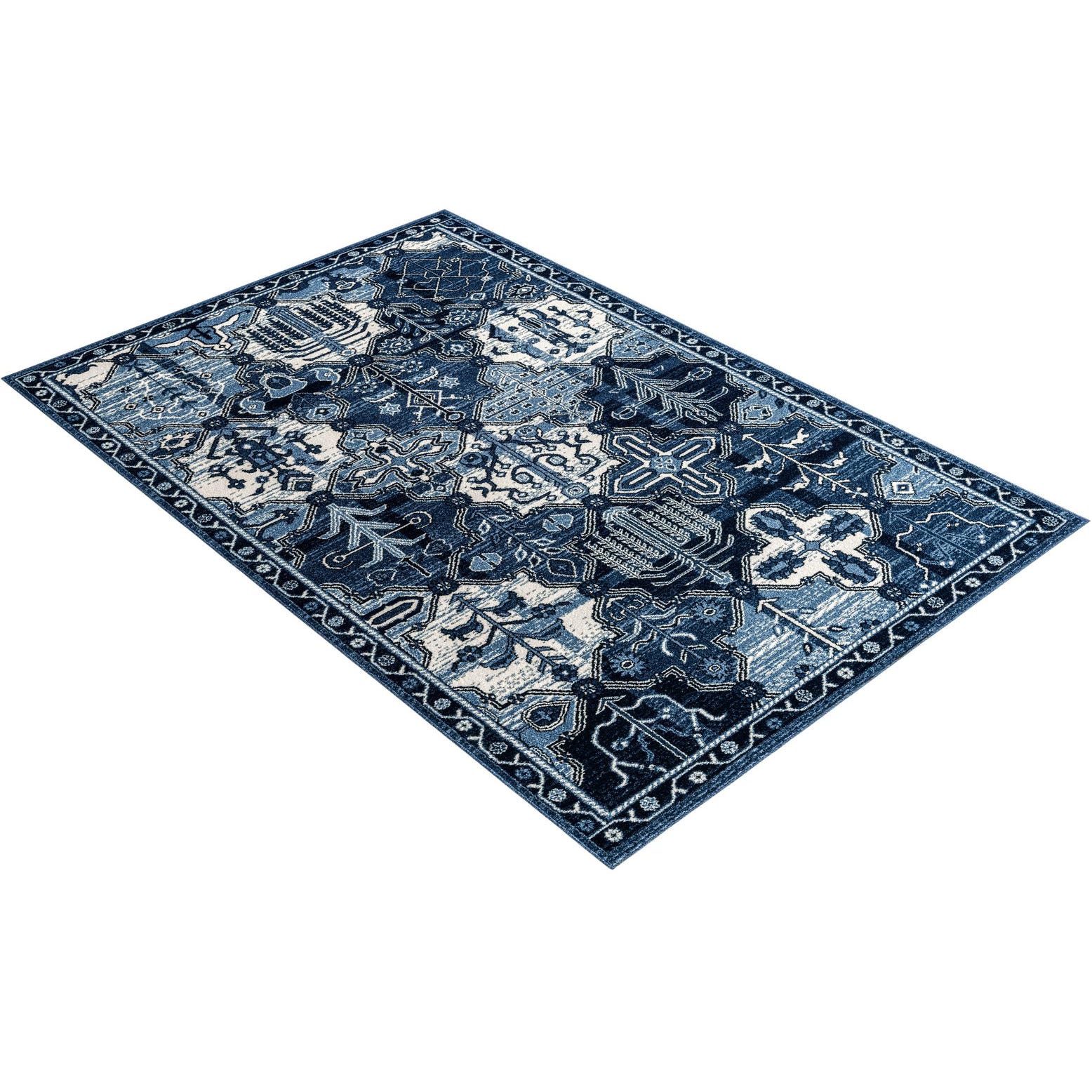 Primary color is Blue. Colors in this rug include: Blue, Ivory, Light Blue, Navy Blue.