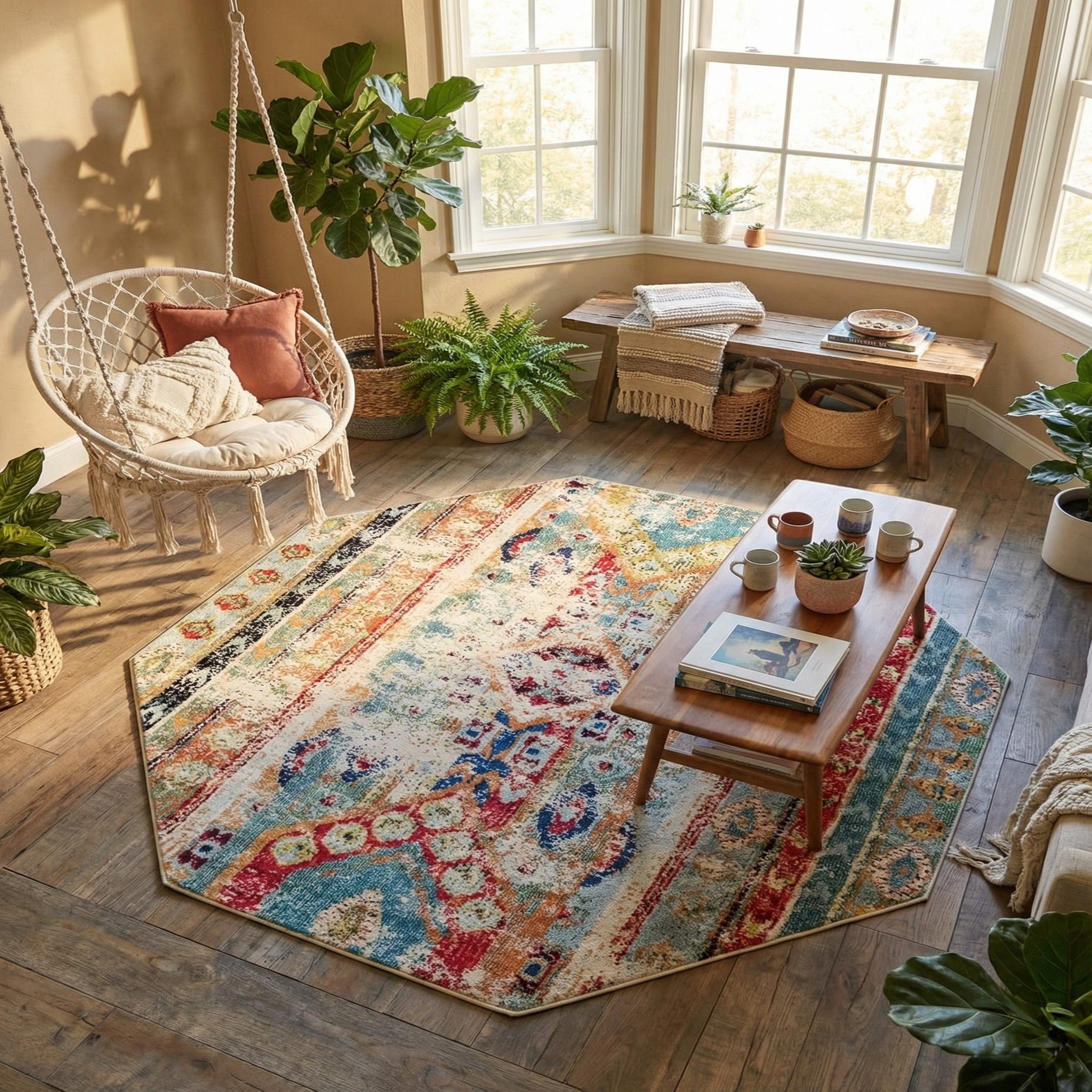 Detail image of 6' x 6'  Washable Santa Fe Octagon Rug