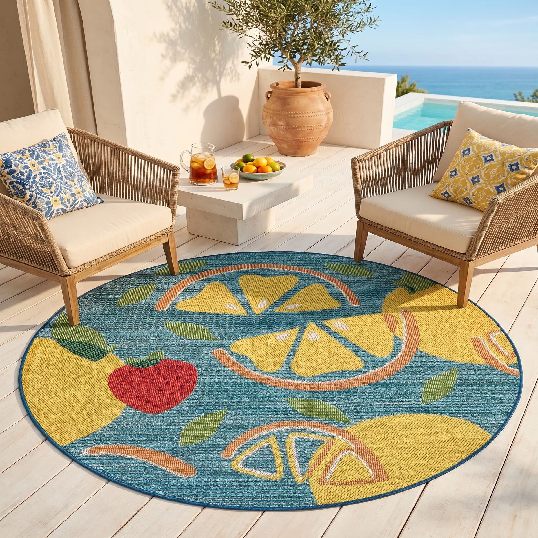 6' 1 x 6' 1 Easy-Clean Baja Indoor / Outdoor Round Rug