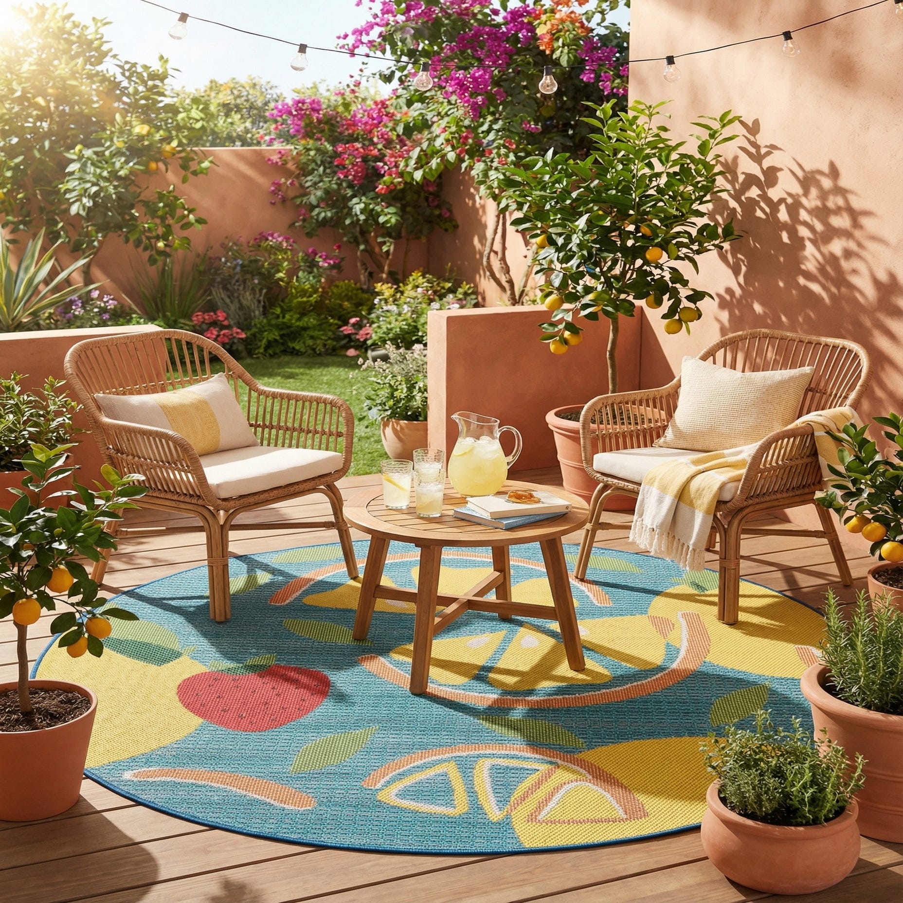 6' 1 x 6' 1 Washable Baja Indoor / Outdoor Round Rug