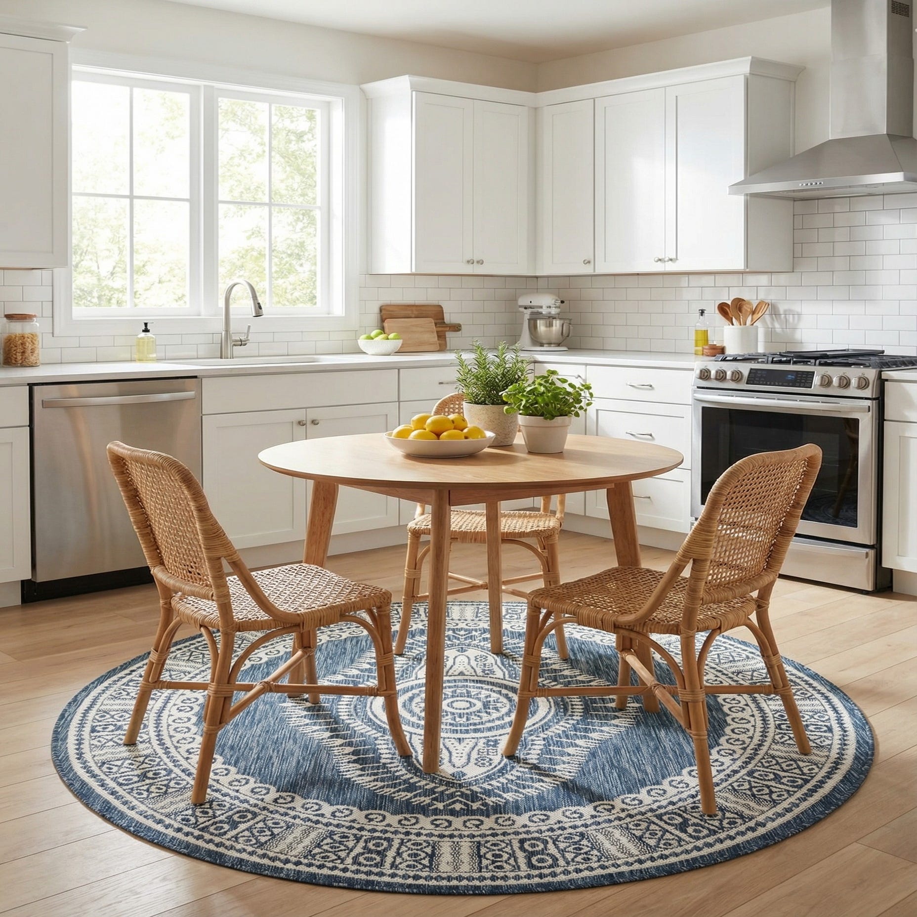 6' x 6' Washable Traditional Indoor / Outdoor Round Rug
