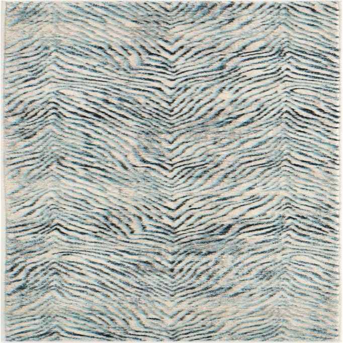 Primary color is Blue. Colors in this rug include: Blue, Gray, Ivory.