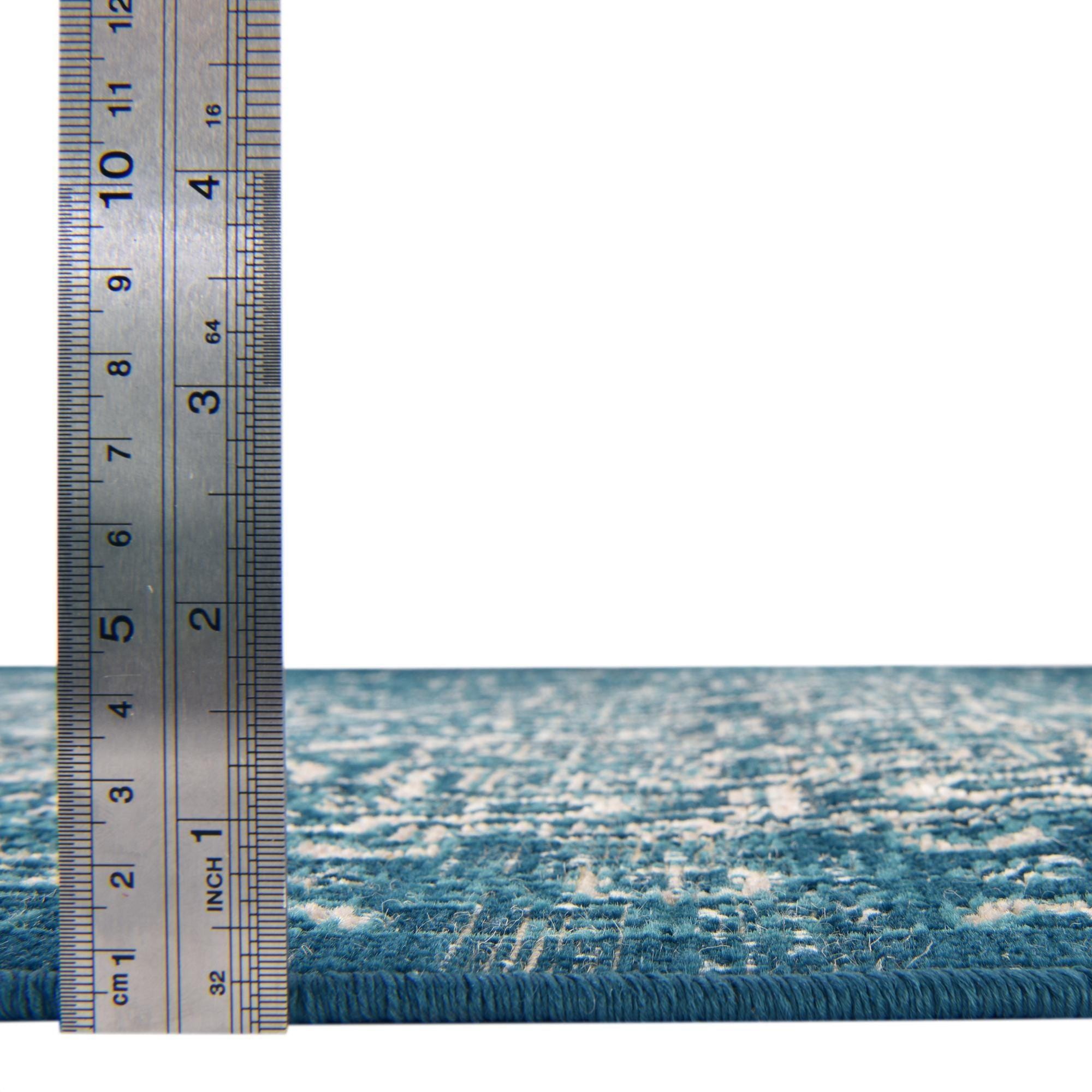 Primary color is Blue. Colors in this rug include: Blue, Gray, Ivory, Light Blue.