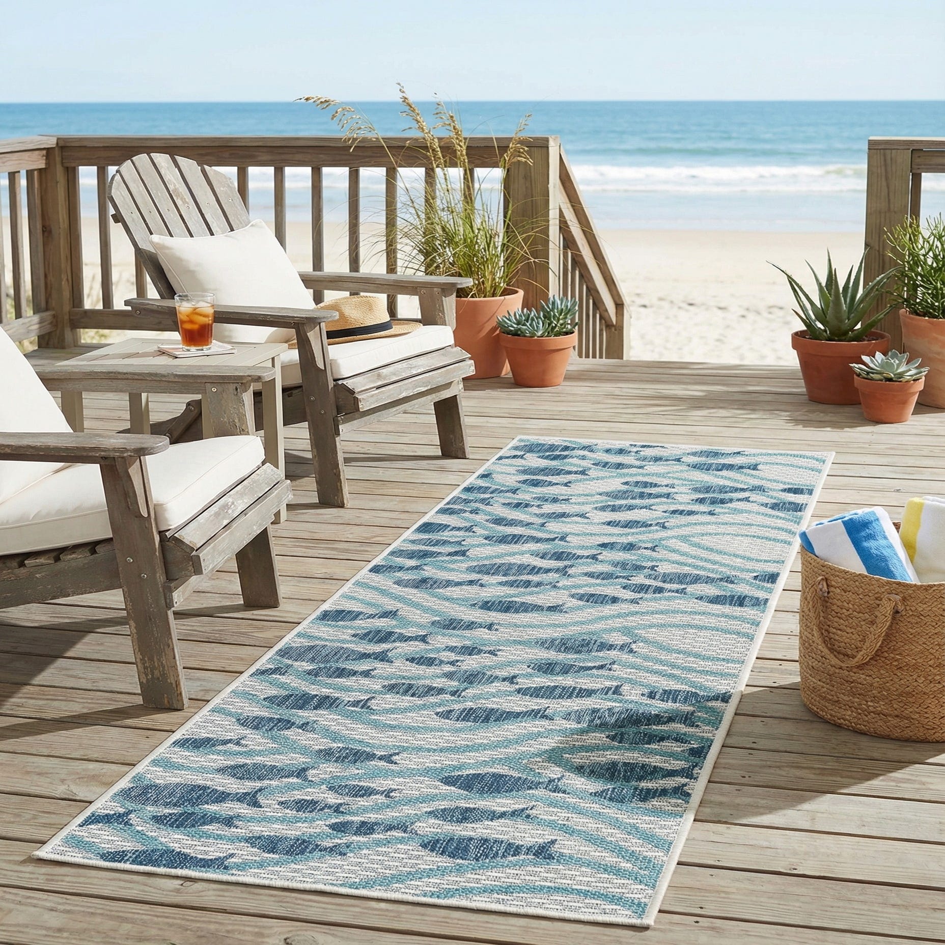 2' x 6' 1 Washable Coastal Indoor / Outdoor Runner Rug