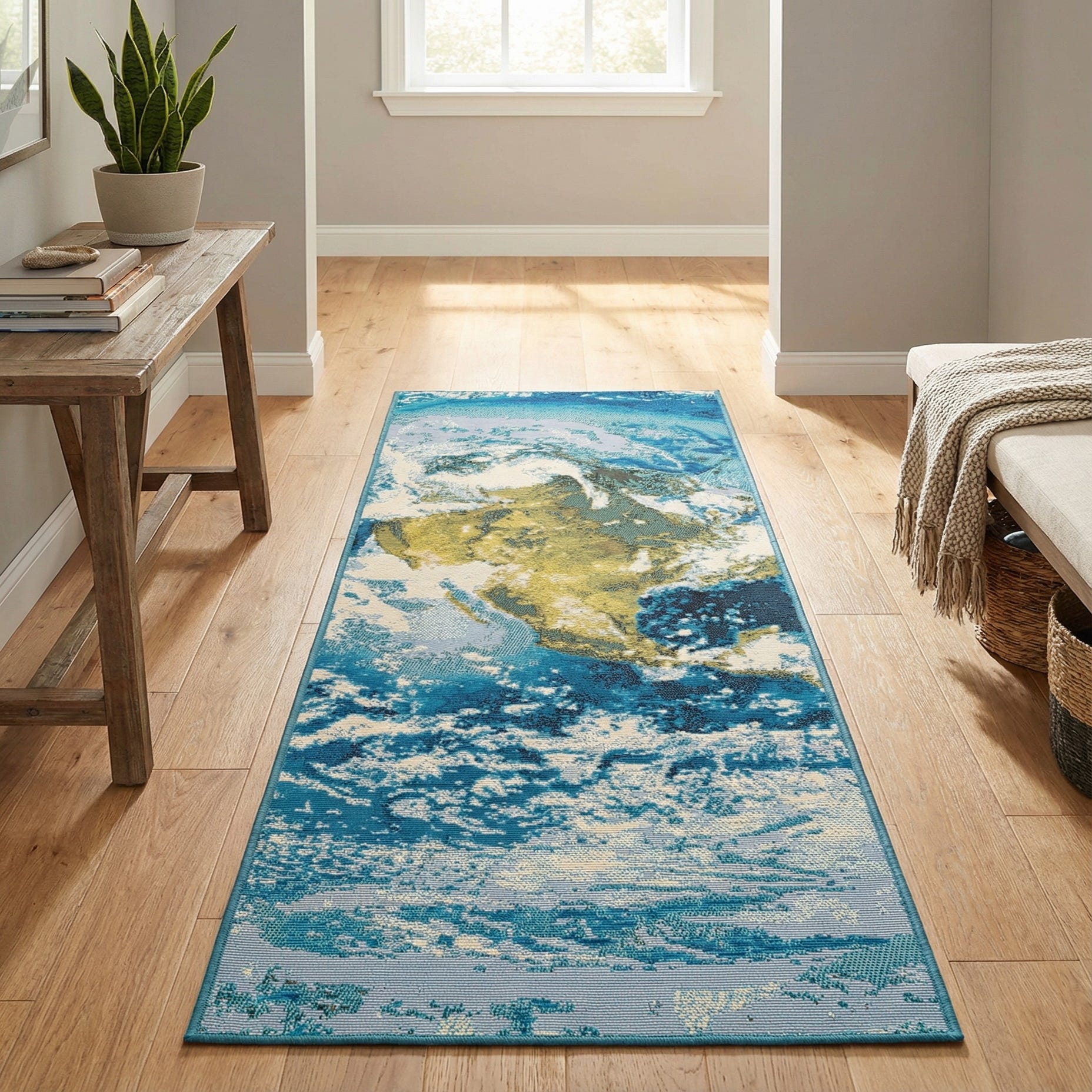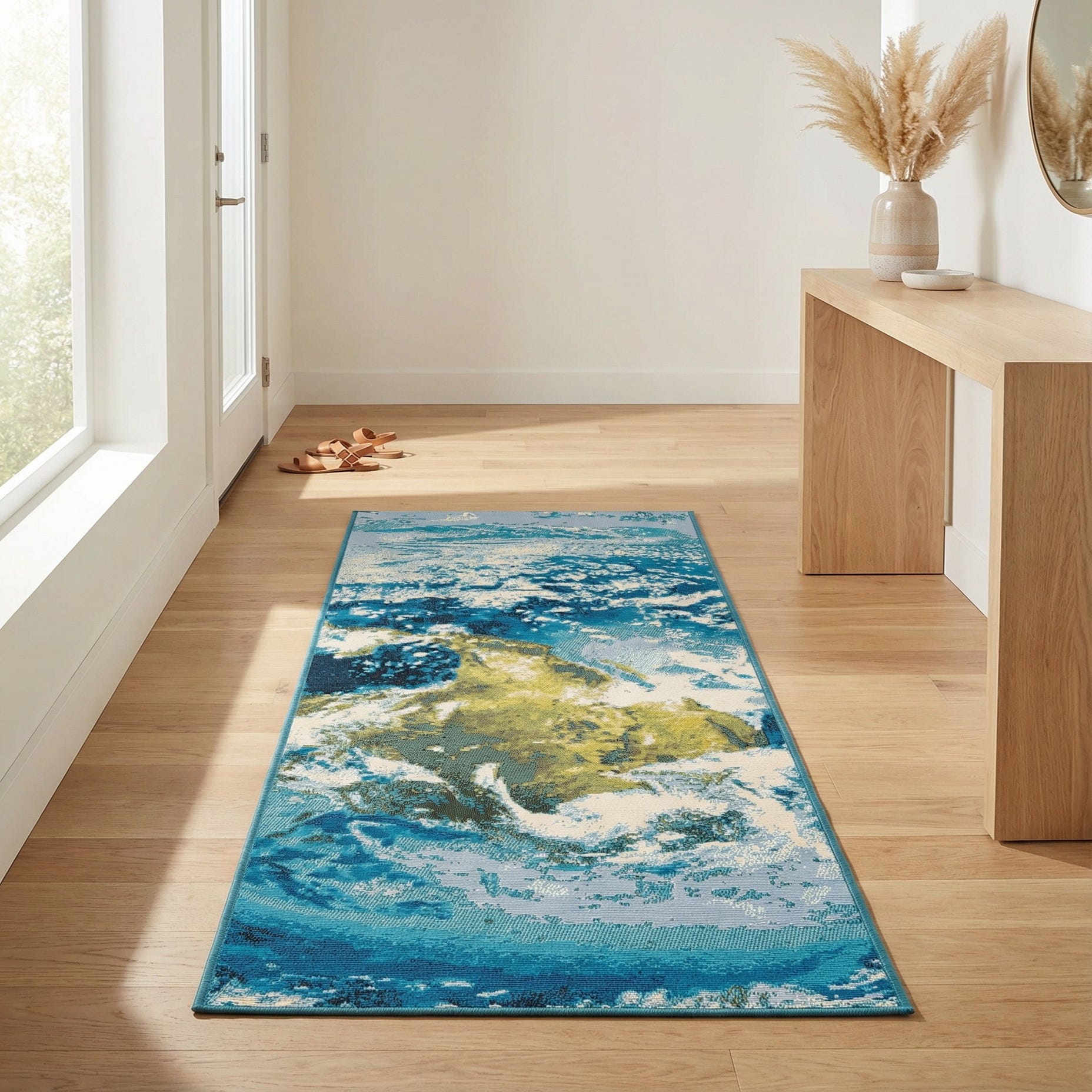 2' x 6' 1 Washable Modern Indoor / Outdoor Runner Rug