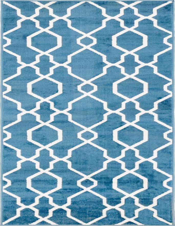 Primary color is Blue. Colors in this rug include: Blue, Cream.