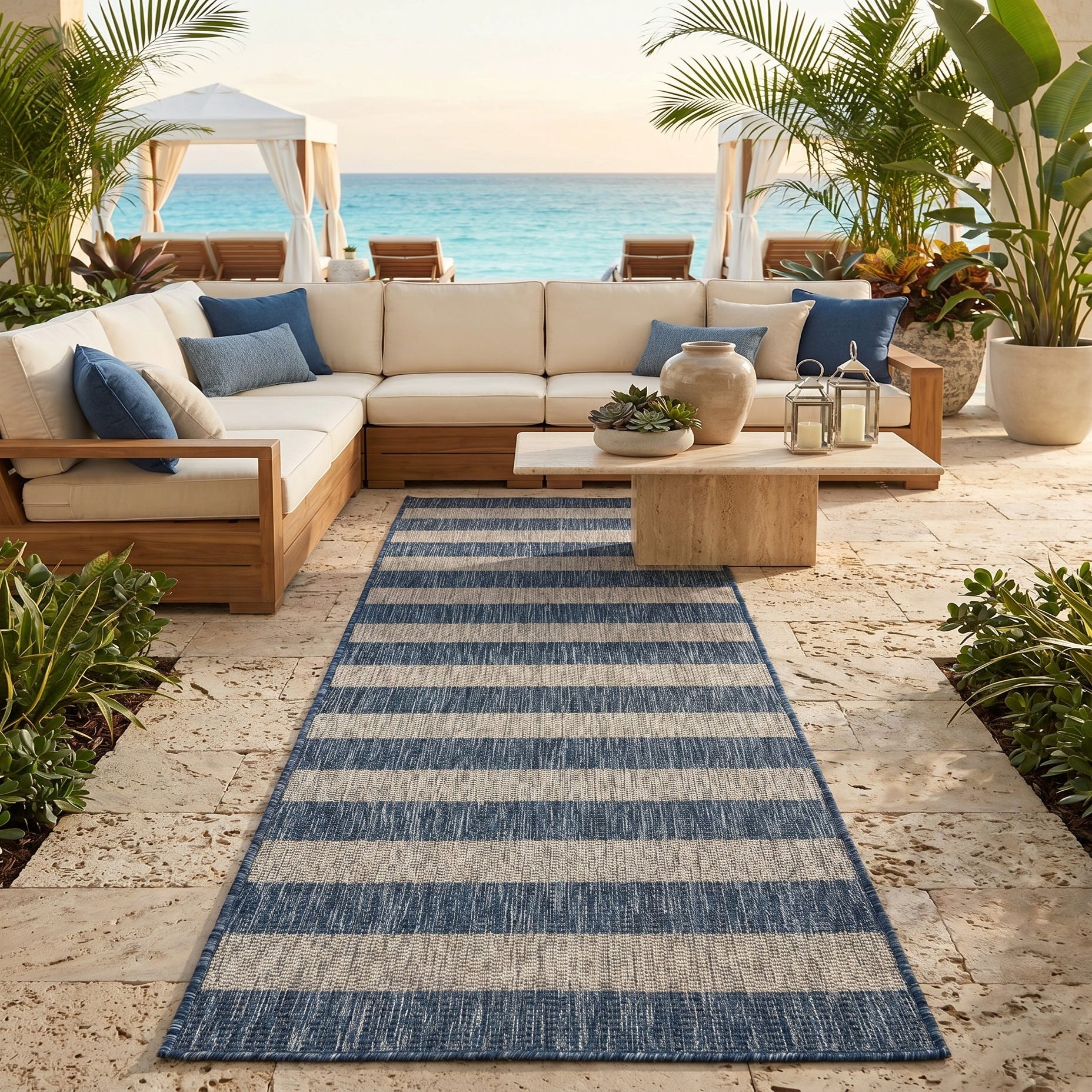 2' x 6' Easy-Clean Striped Indoor / Outdoor Runner Rug