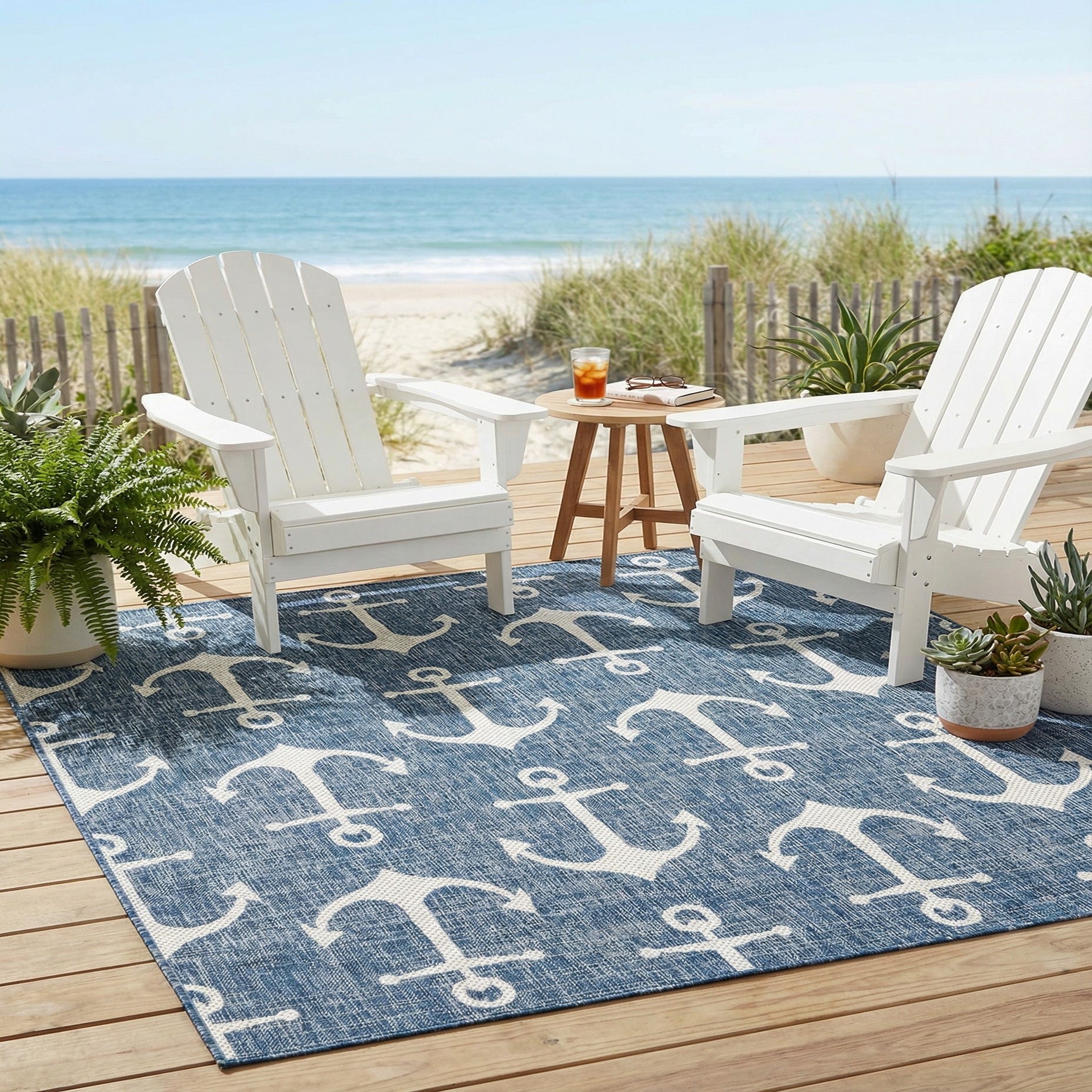 6' x 6' Washable Coastal Indoor / Outdoor Square Rug