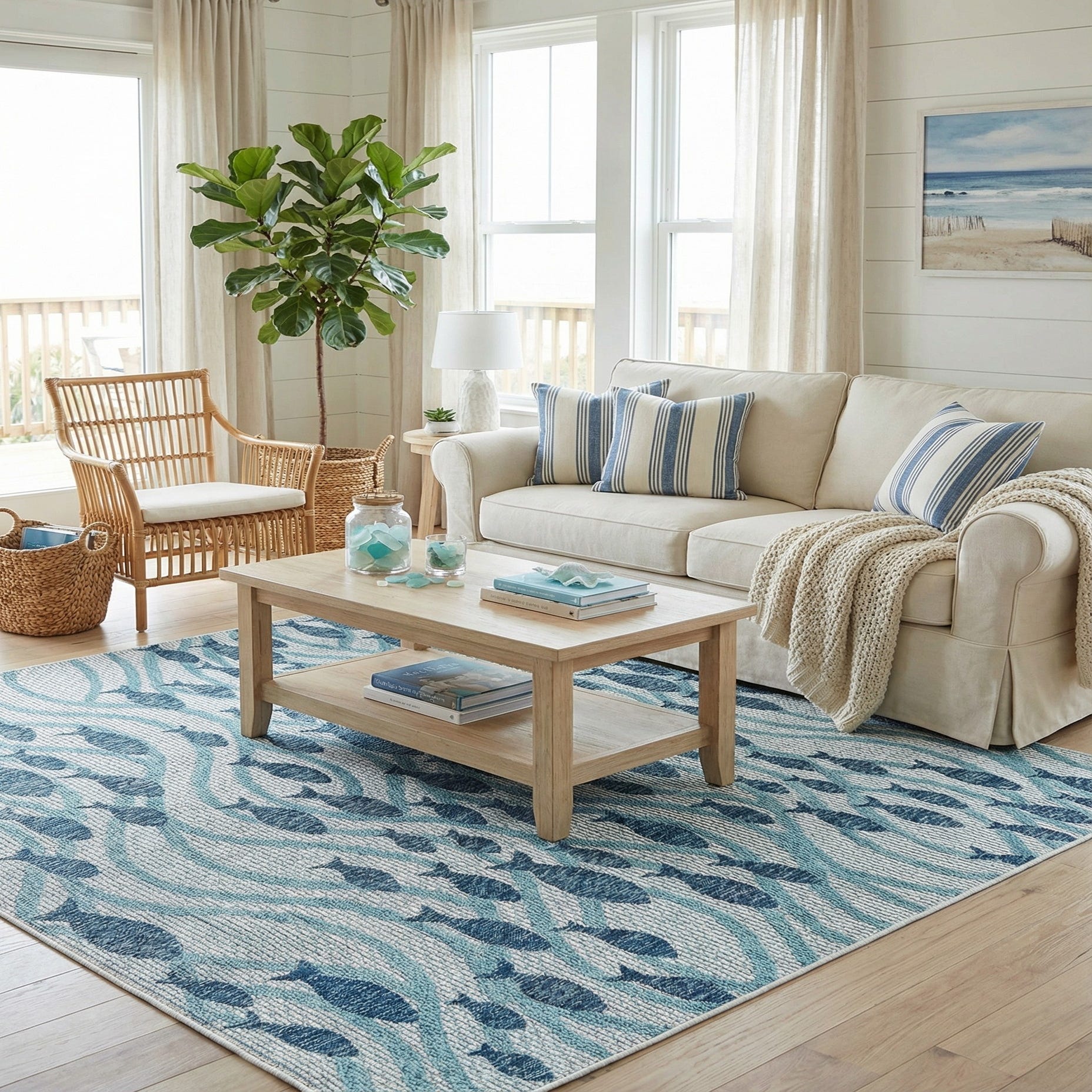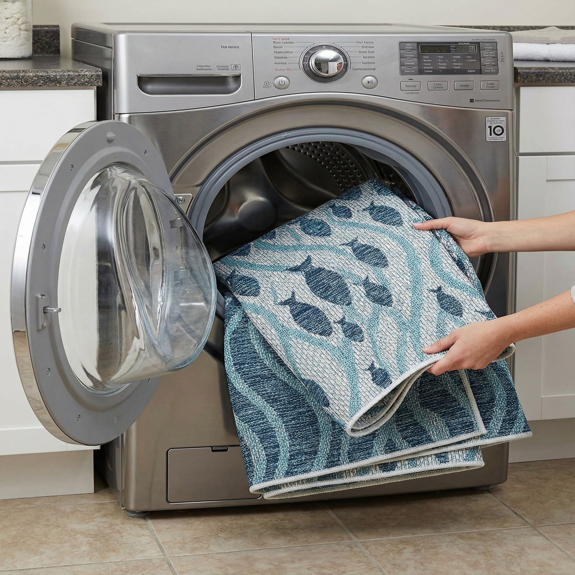 6' x 6' Washable Coastal Indoor / Outdoor Square Rug