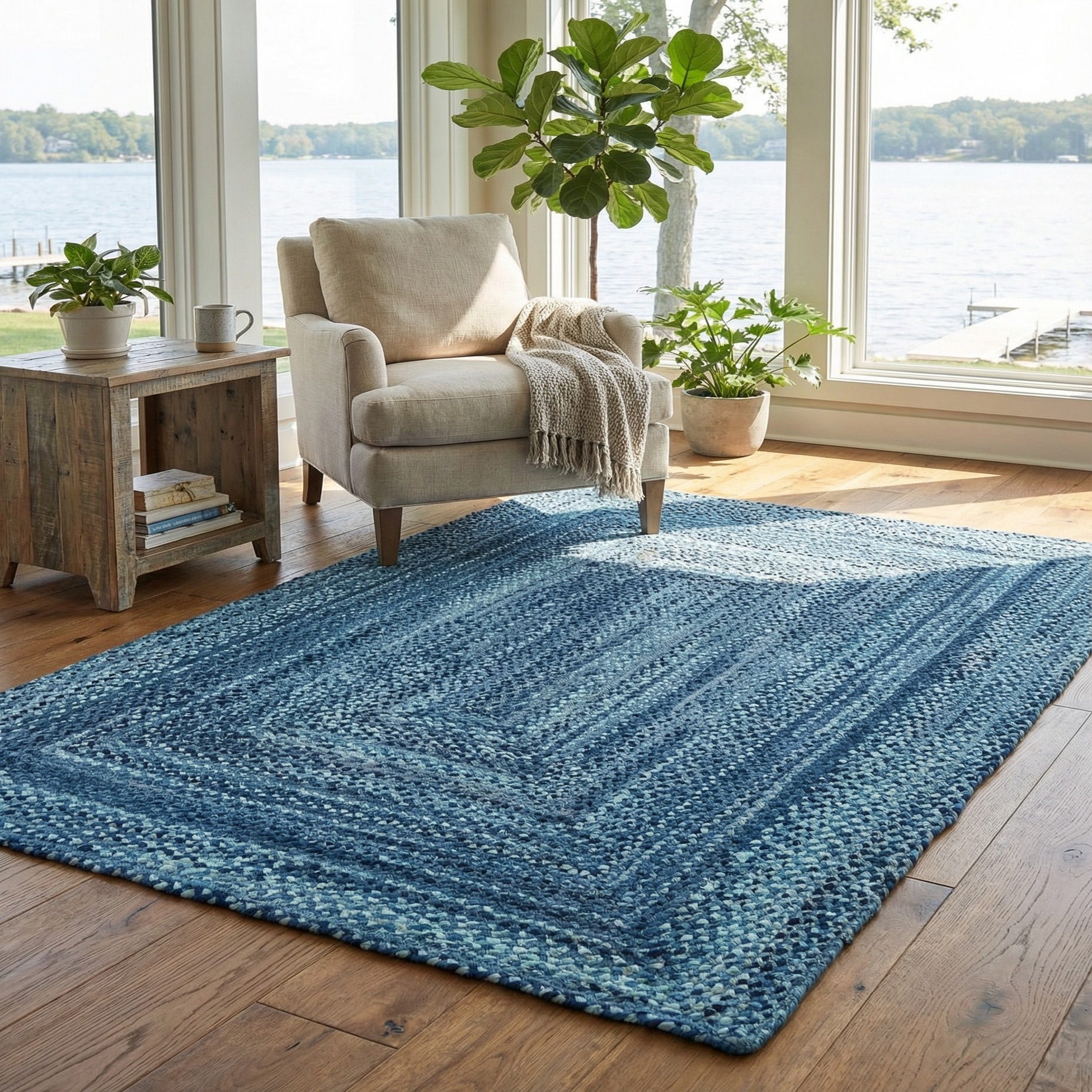 Primary color is Blue. Colors in this rug include: Blue, Light Blue, Navy Blue, Turquoise.
