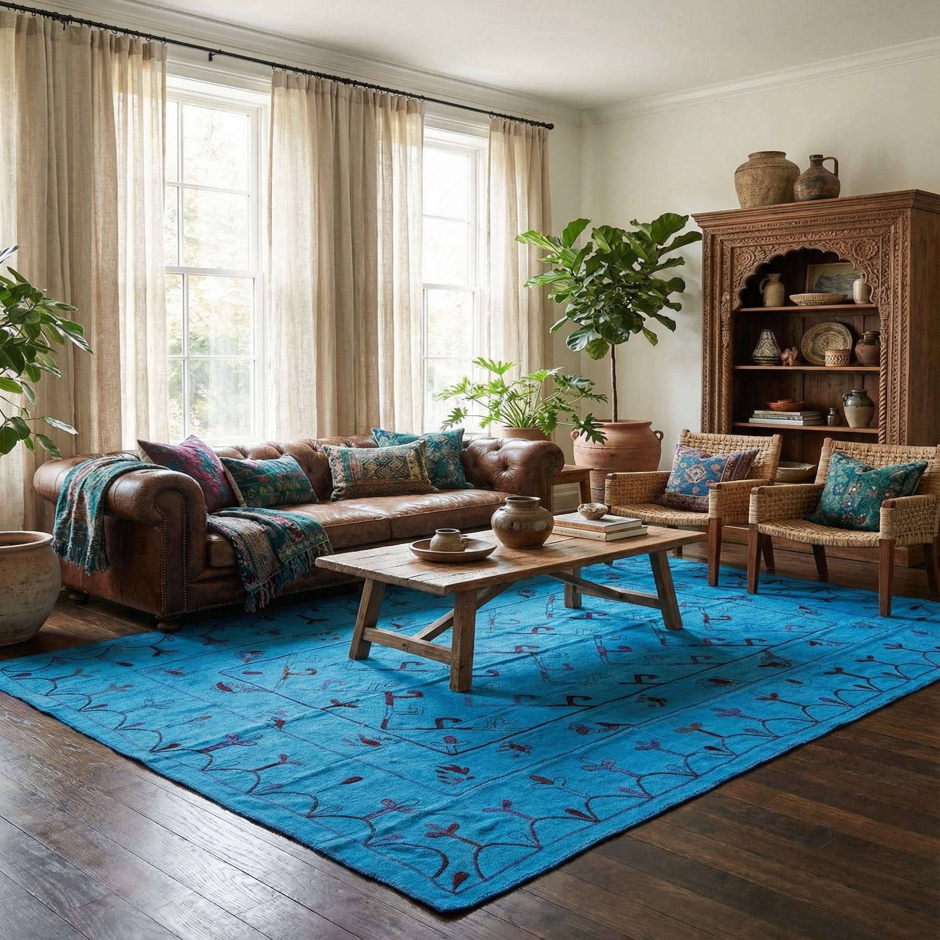 6' 9 x 9' 4 Hand Woven Kilim Suzani Wool Rug