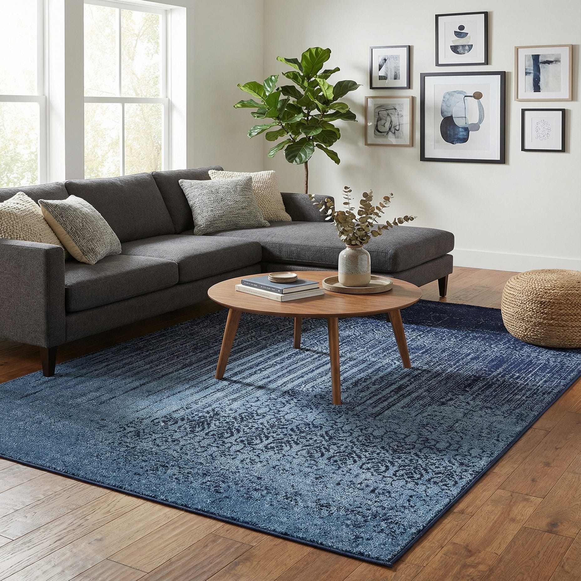 Primary color is Blue. Colors in this rug include: Blue, Navy Blue.