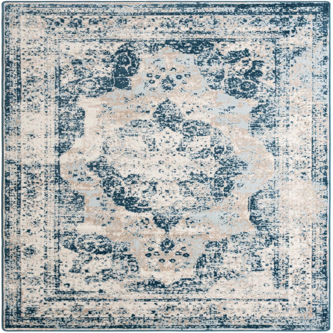 Primary color is Blue. Colors in this rug include: Blue, Beige, Ivory, Light Blue.