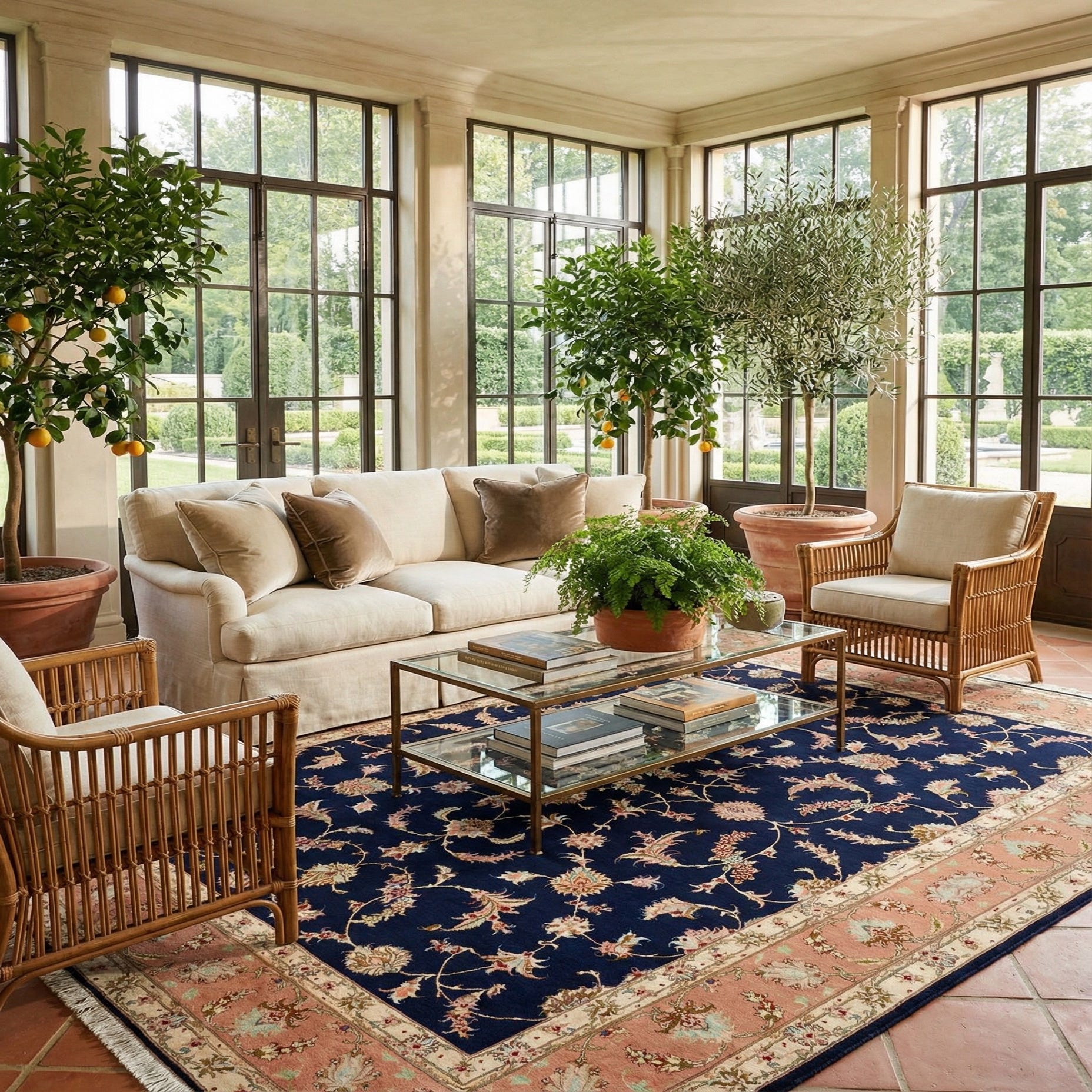 Primary color is Blue. Colors in this rug include: Blue, Dark Blue, Pink, Beige, Grey, Turquoise, Green.