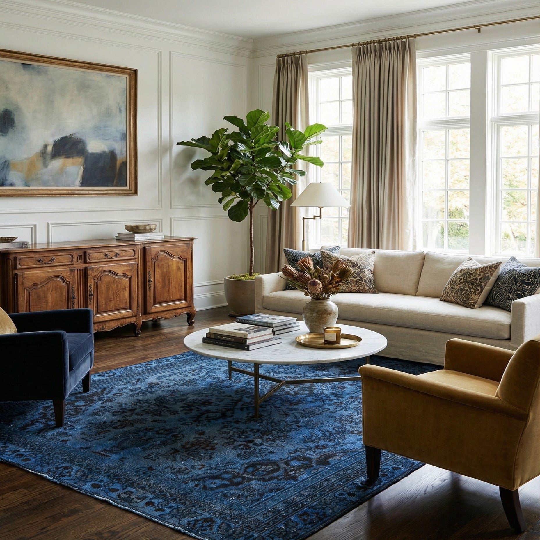 Primary color is Blue. Colors in this rug include: Blue, Navy Blue.