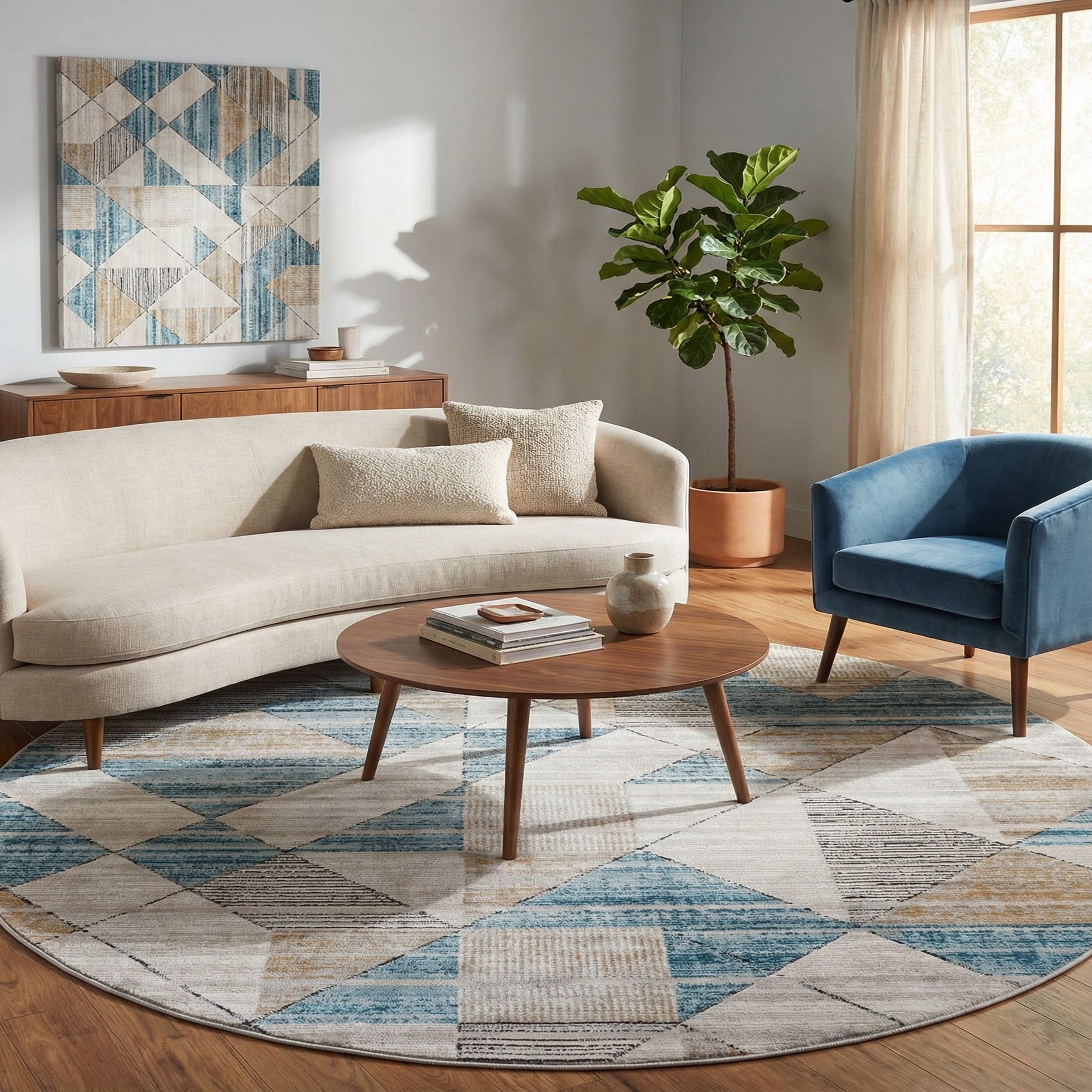 Primary color is Blue. Colors in this rug include: Blue, Beige, Brown, Gray, Ivory.
