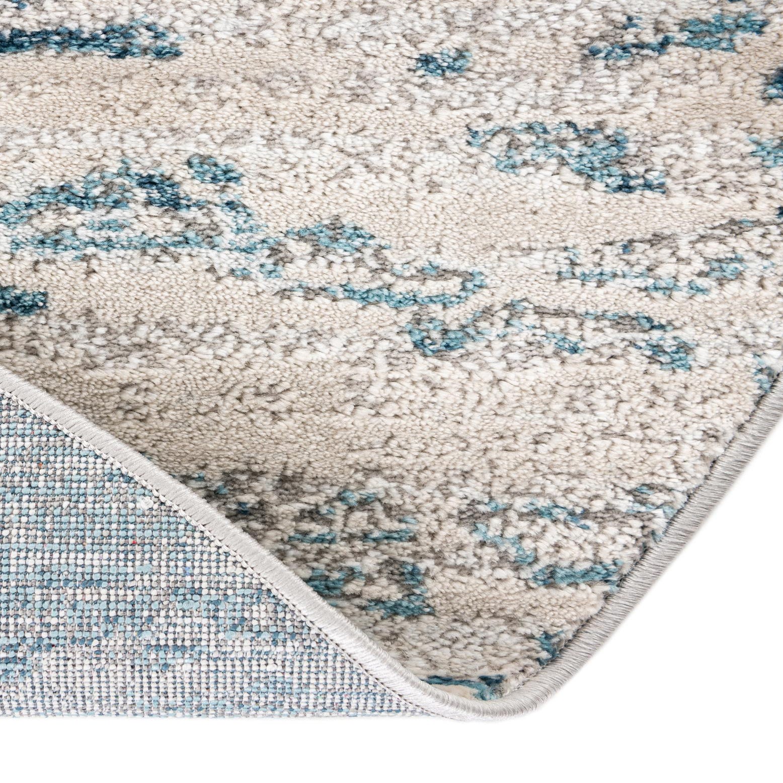 Primary color is Blue. Colors in this rug include: Blue, Gray, Ivory, Navy Blue, Beige.