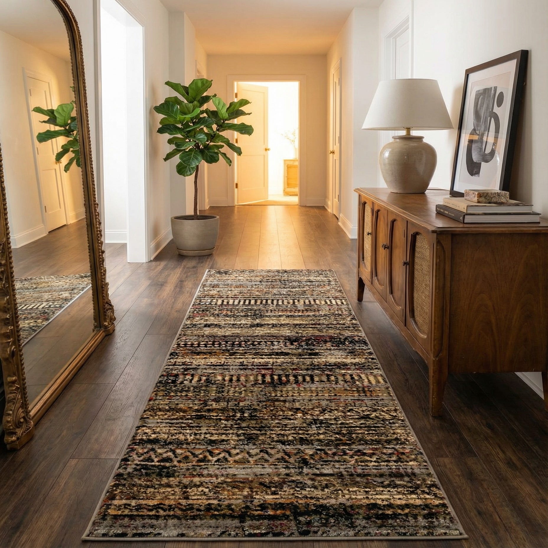Primary color is Blue. Colors in this rug include: Blue, Beige, Black, Gray, Red, Olive.