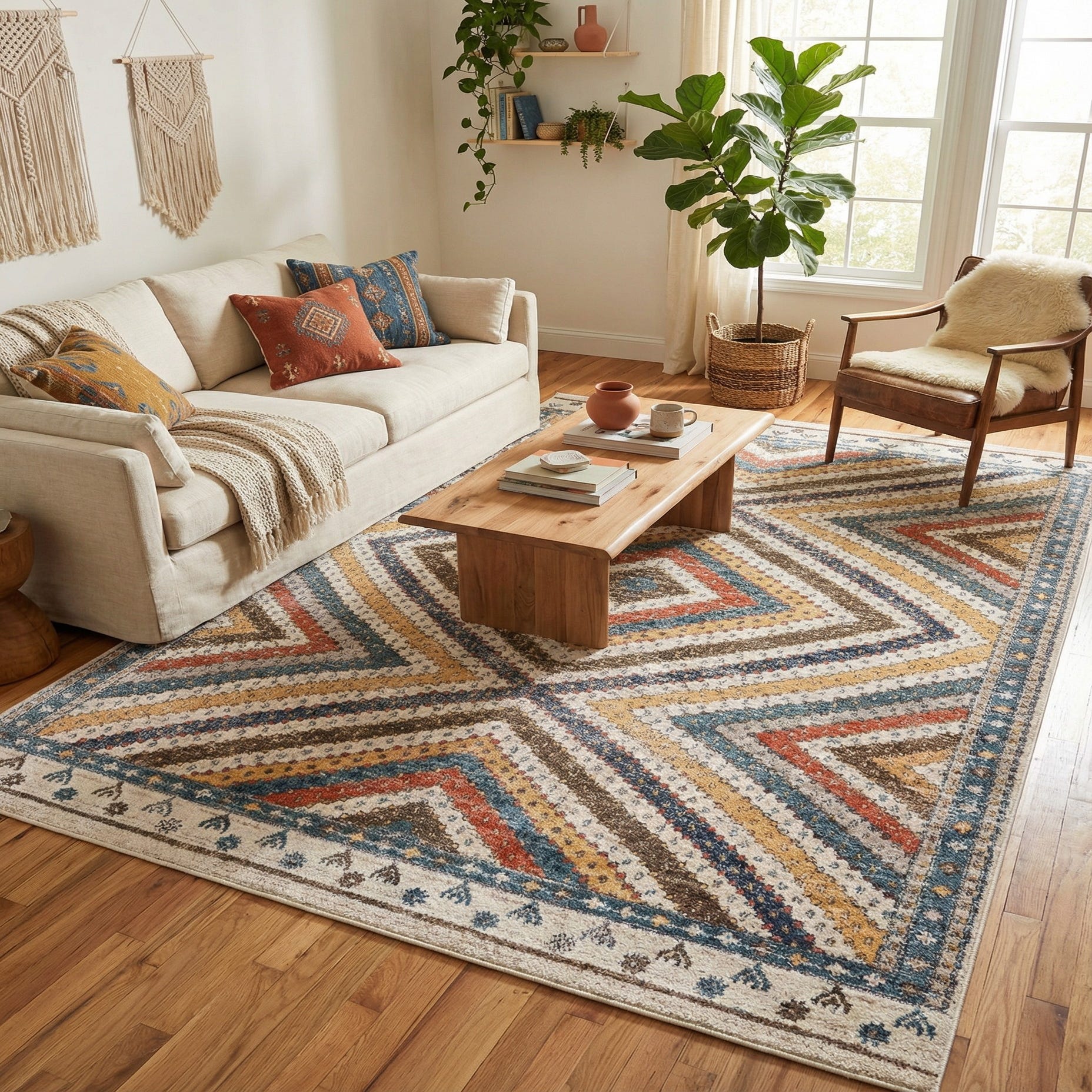 Primary color is Blue. Colors in this rug include: Blue, Light Blue, Ivory, Light Brown, Terracotta.