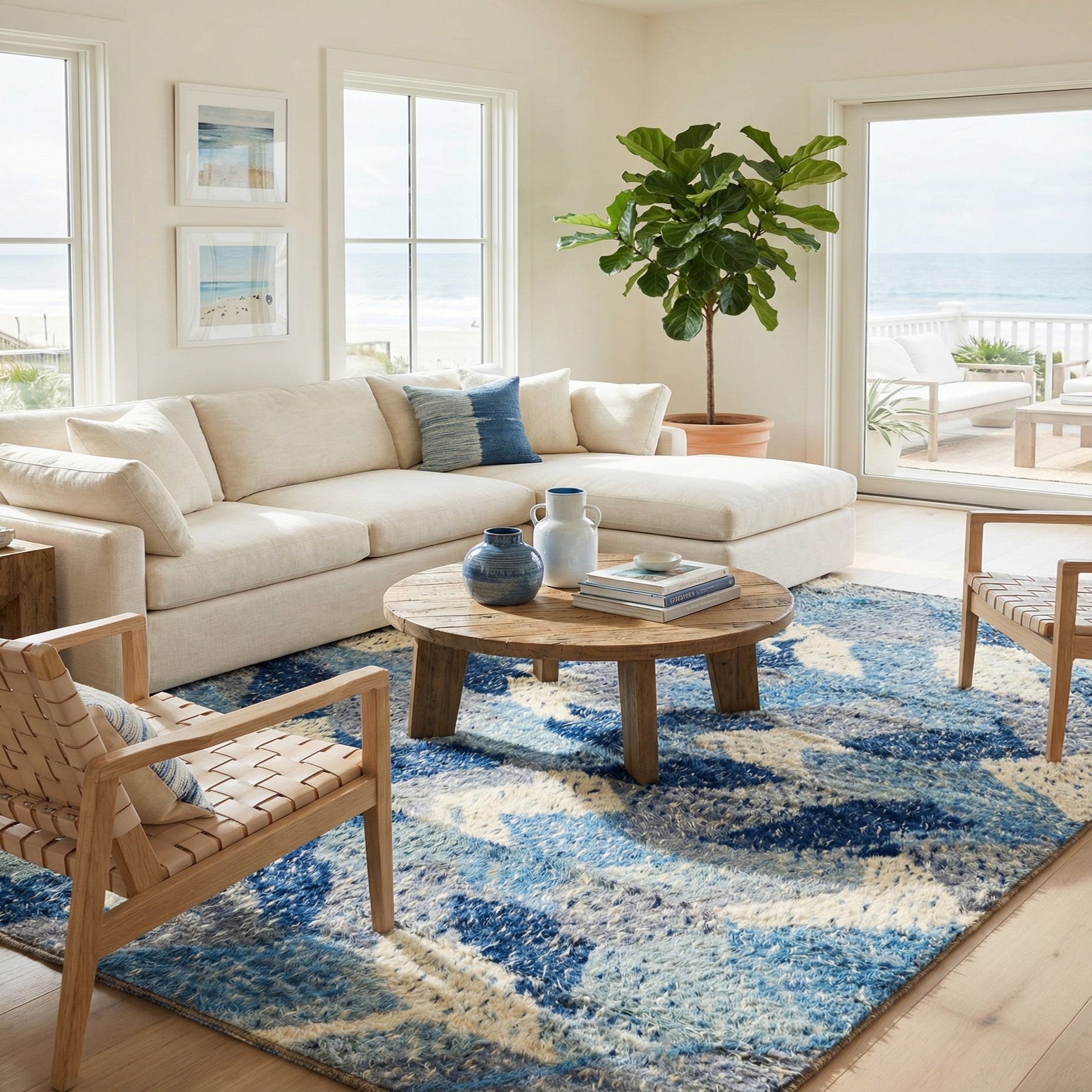 Primary color is Blue. Colors in this rug include: Blue, Cream, Gray, Navy Blue.