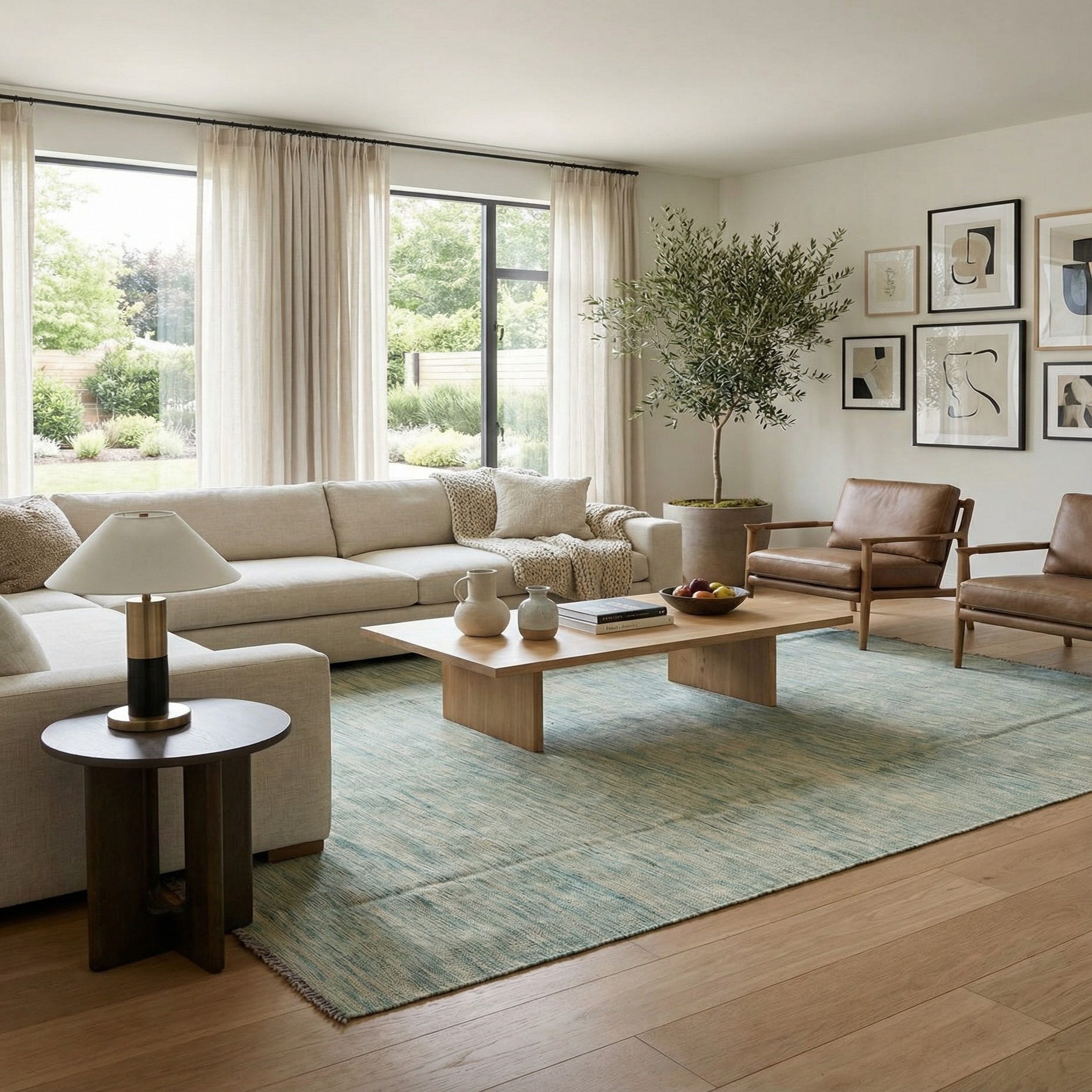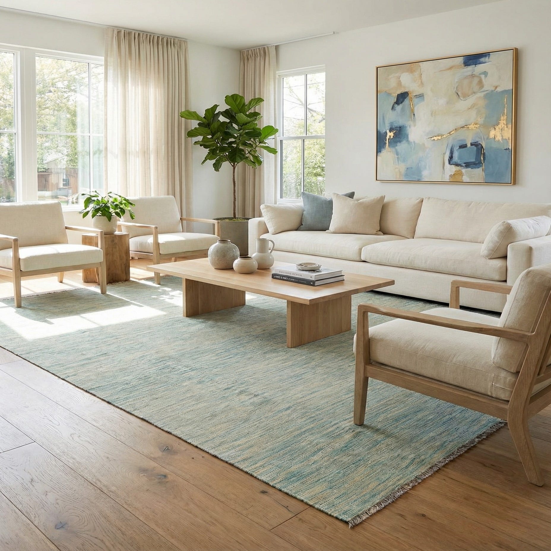 Primary color is Blue. Colors in this rug include: Blue, Beige.
