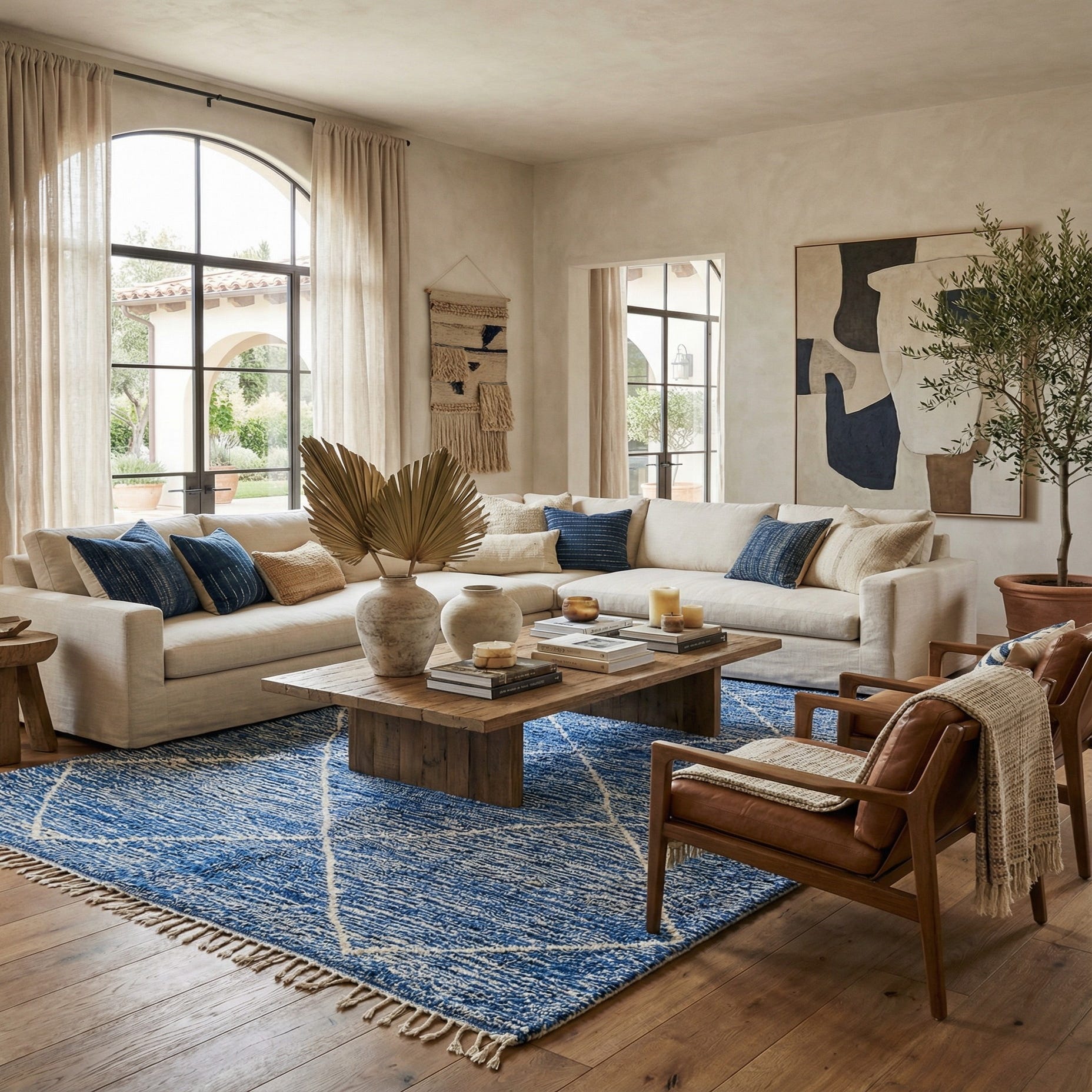 Primary color is Blue. Colors in this rug include: Blue, Ivory.