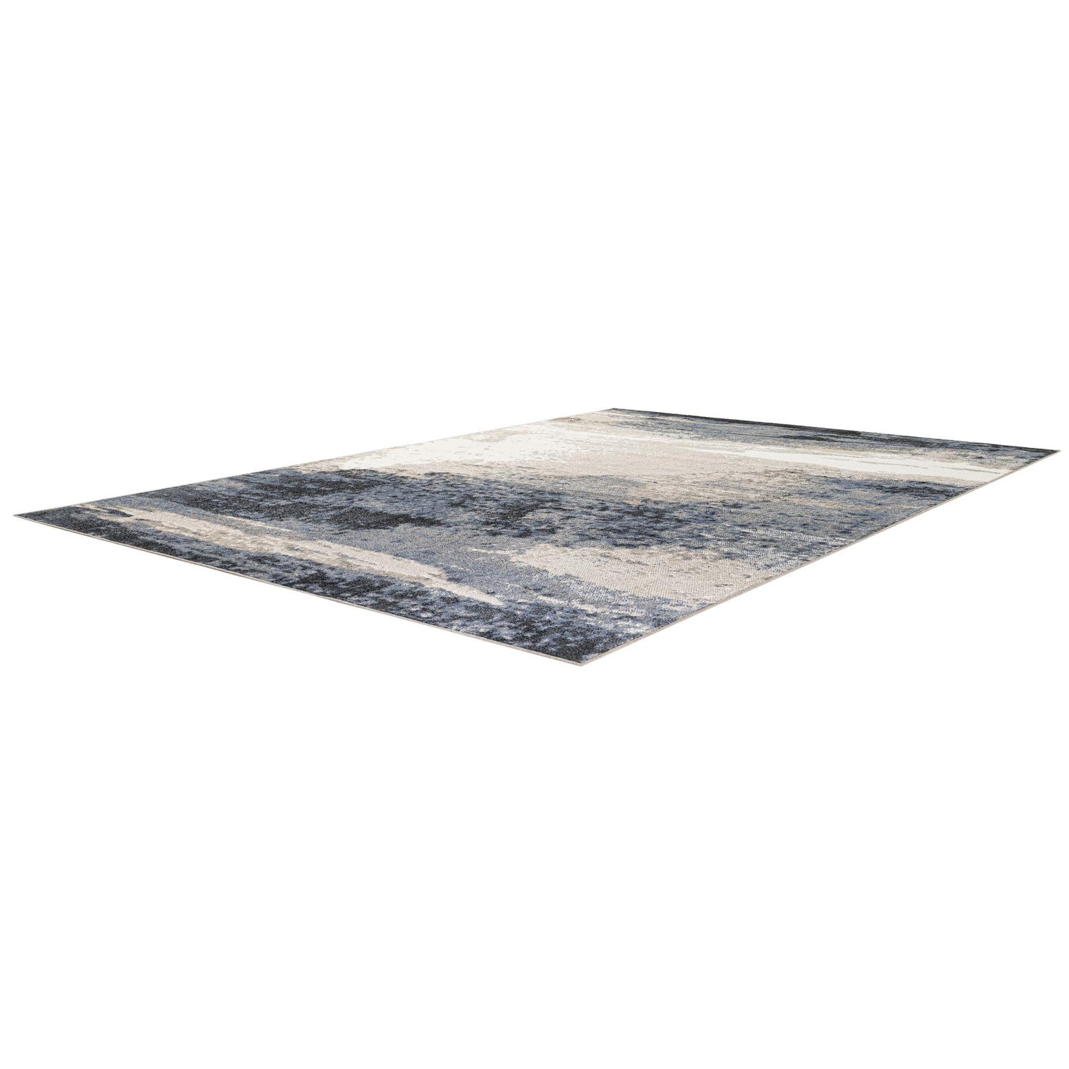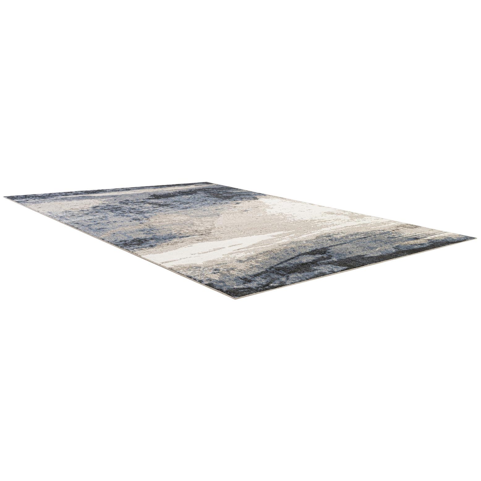 Primary color is Blue. Colors in this rug include: Blue, Black, Ivory, Gray.