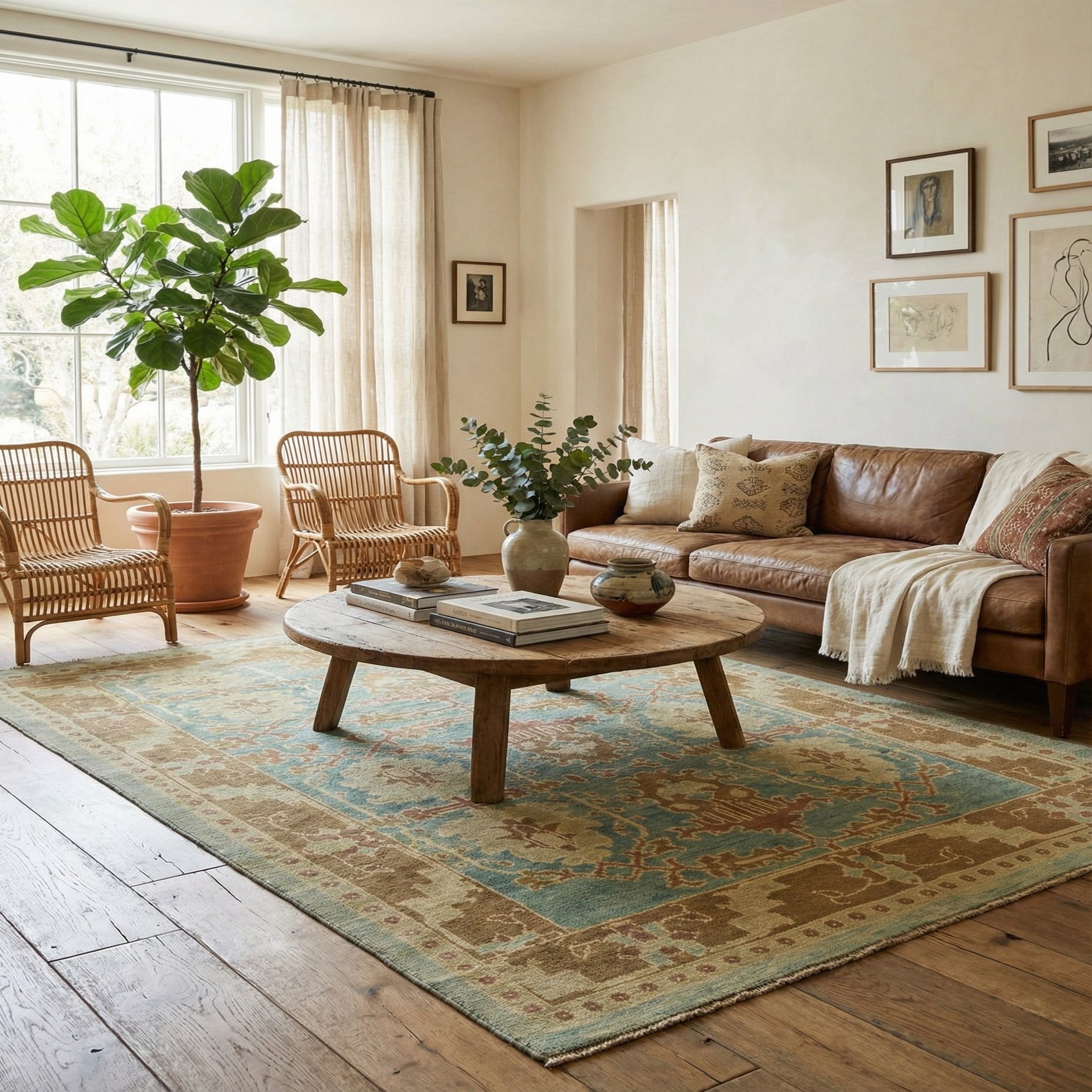 7' x 9' 9 Hand Knotted Oushak Wool Rug