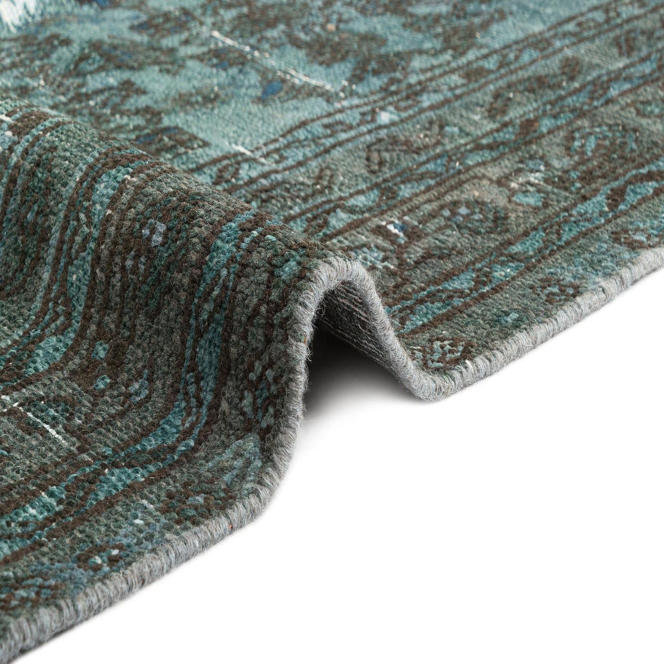 Primary color is Blue. Colors in this rug include: Blue, Blue Brown, White.