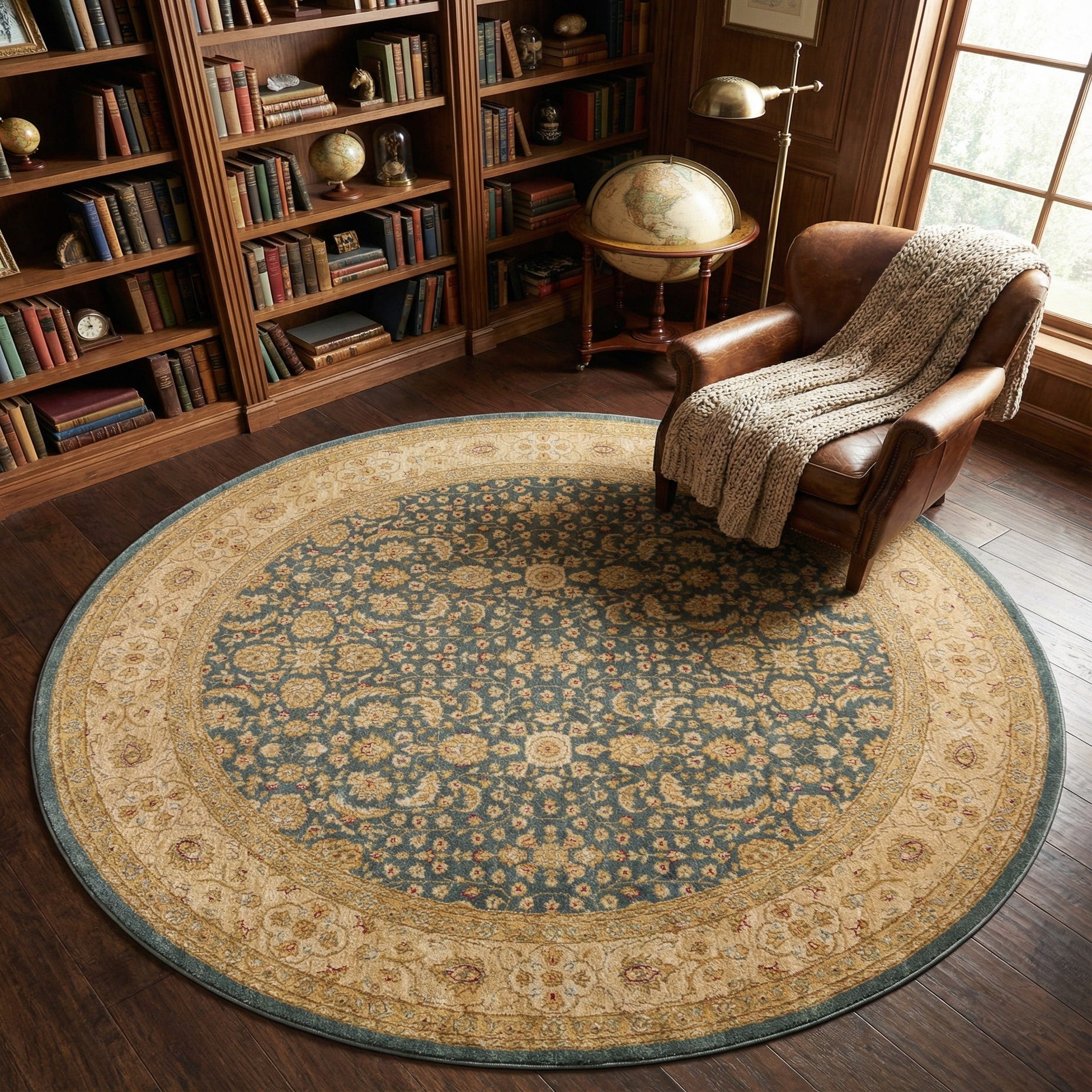 Primary color is Blue. Colors in this rug include: Blue, Cream, Beige, Light Brown, Red, Light Green.