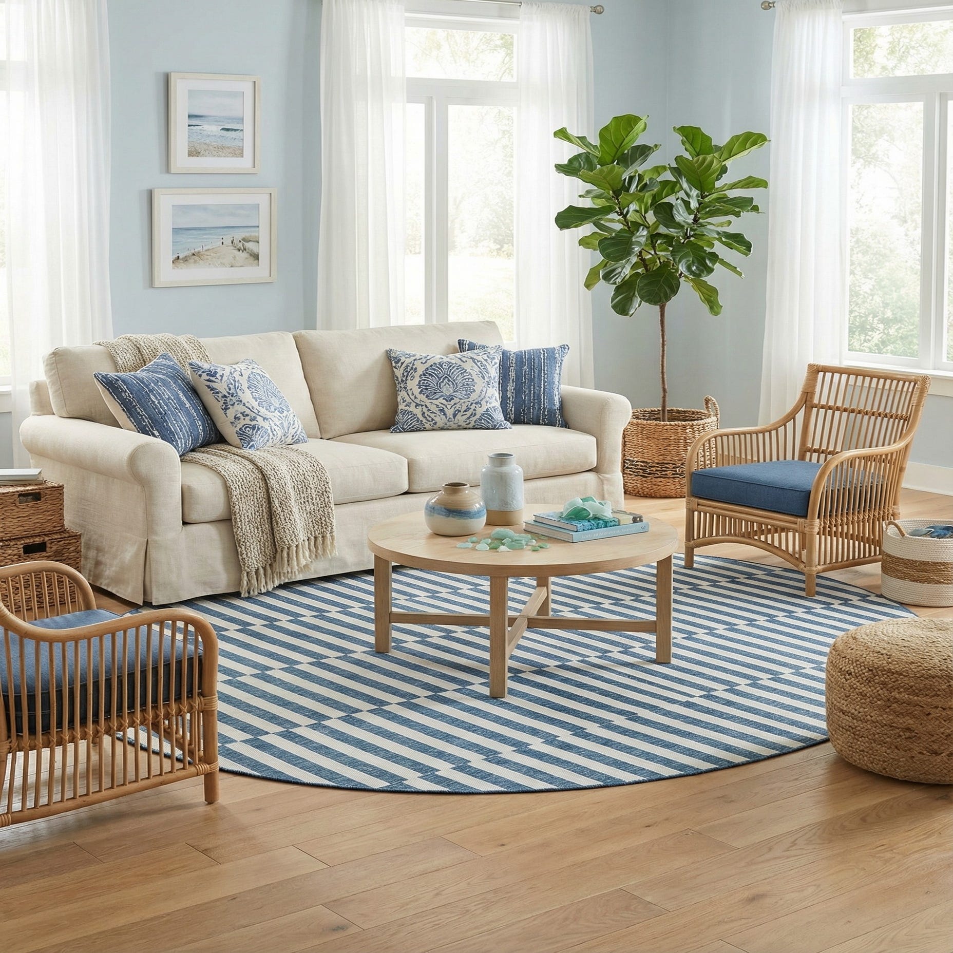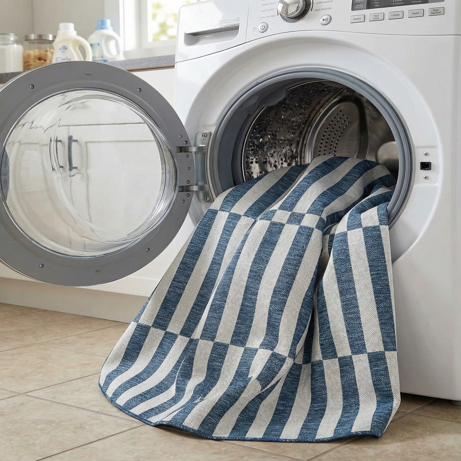 7' 10 x 7' 10 Washable Striped Indoor / Outdoor Round Rug