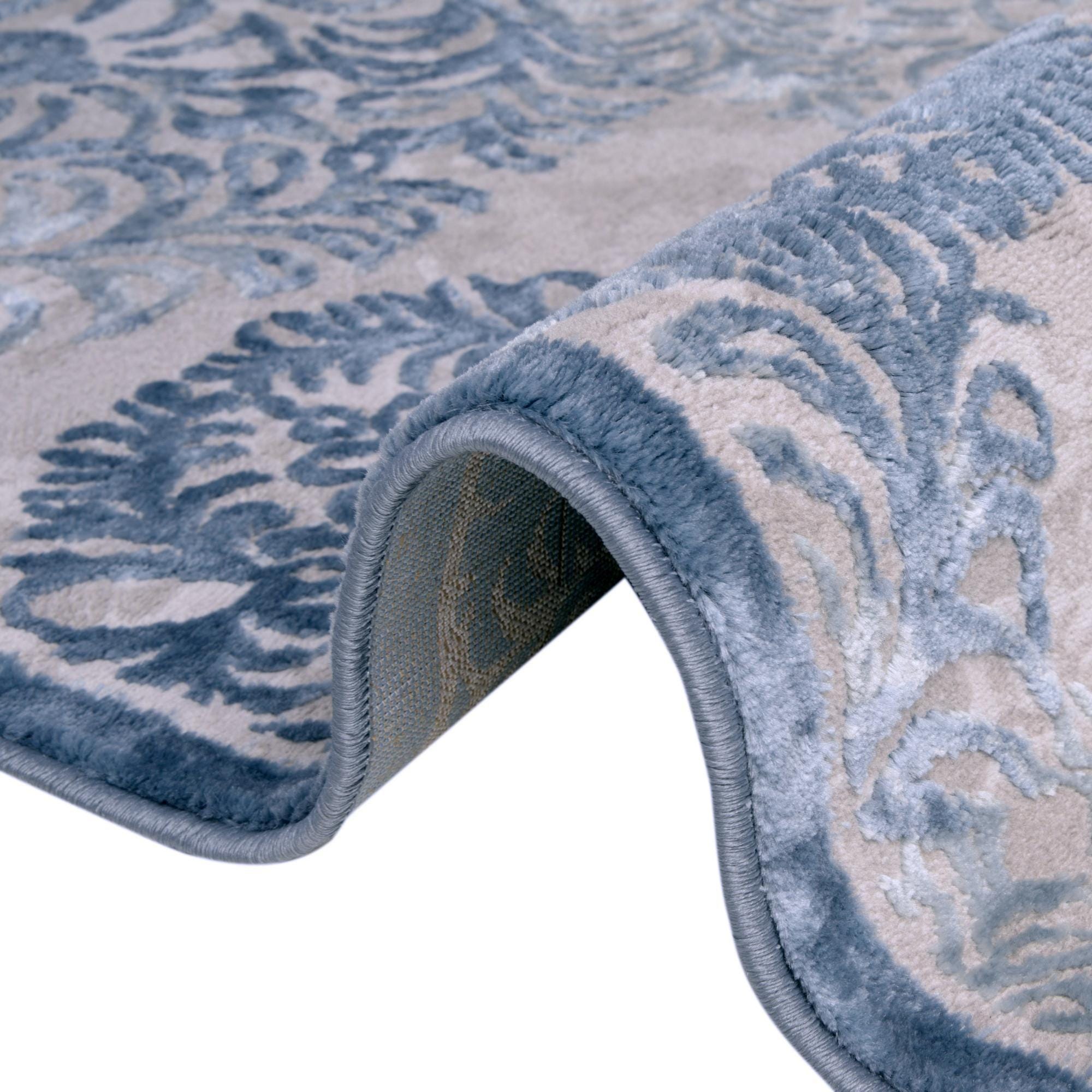 Primary color is Blue. Colors in this rug include: Blue, Beige, Light Blue.