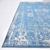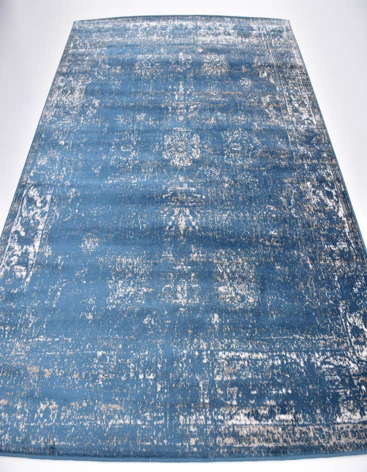 Primary color is Blue. Colors in this rug include: Blue, Beige, Tan.