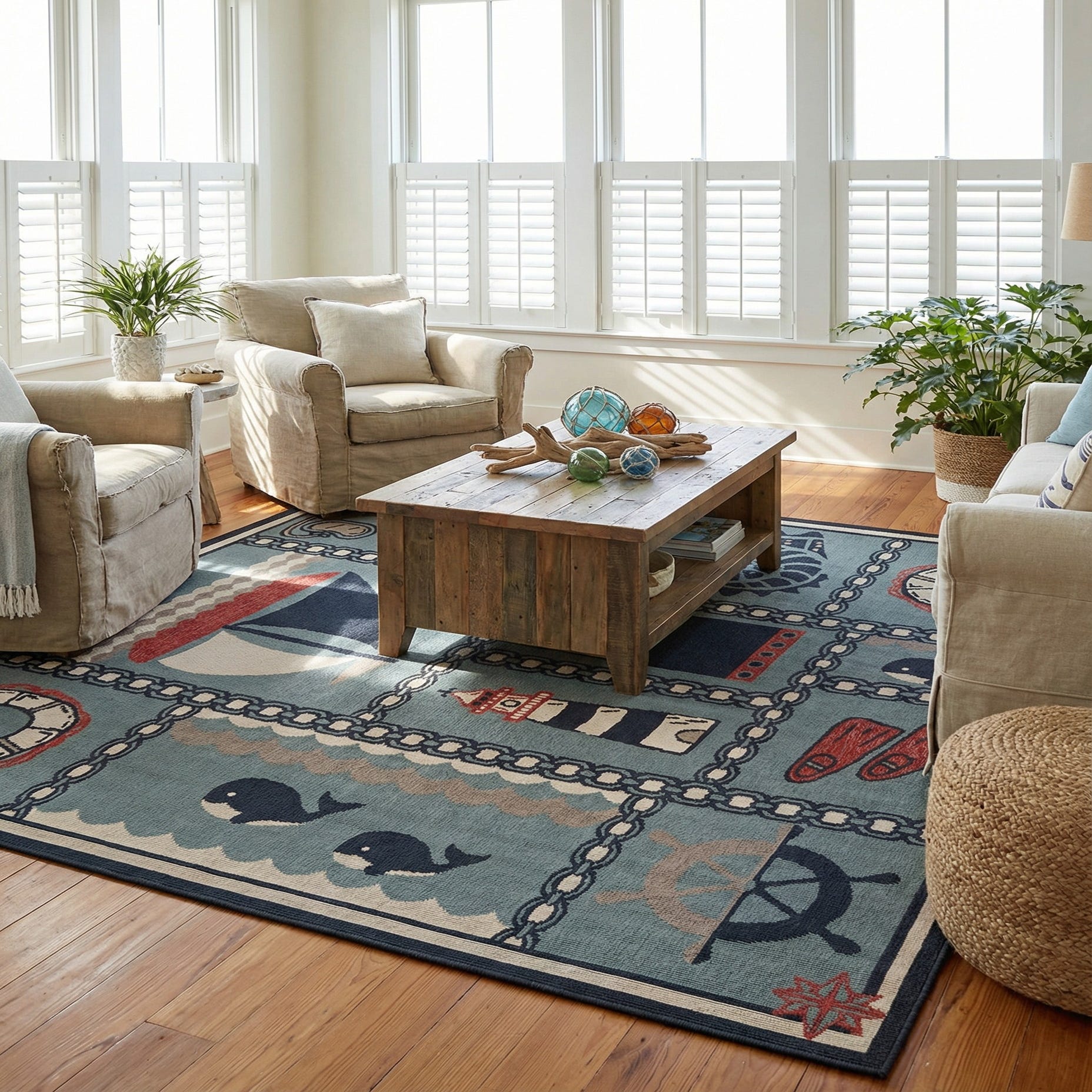 7' 10 x 7' 10 Washable Coastal Indoor / Outdoor Square Rug